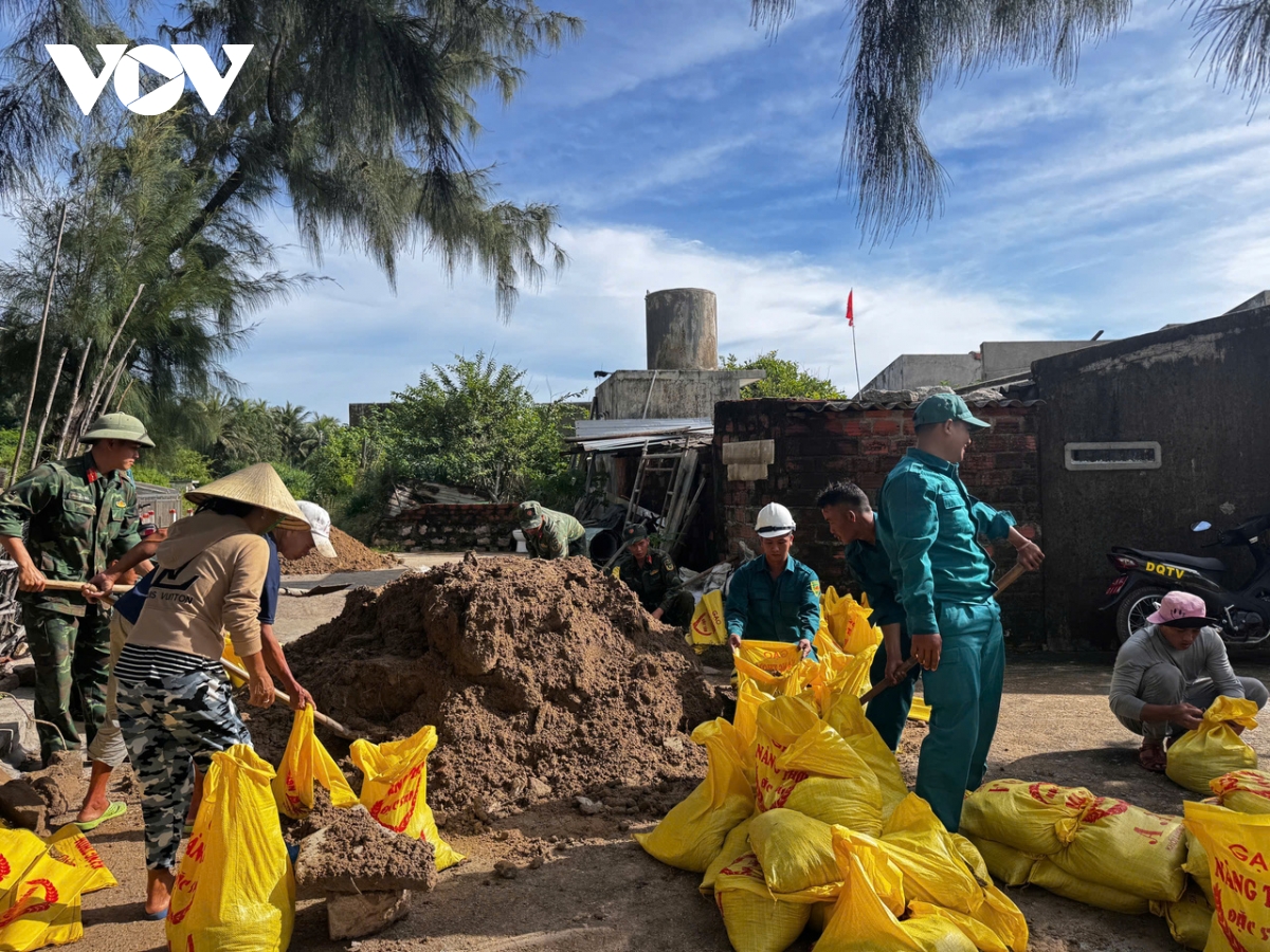 Đối với các hộ dân có nhà kiên cố chính quyền địa phương đã huy động lực lượng xung kích sẵn sàng ứng phó, hỗ trợ người dân chằng chống nhà cửa.