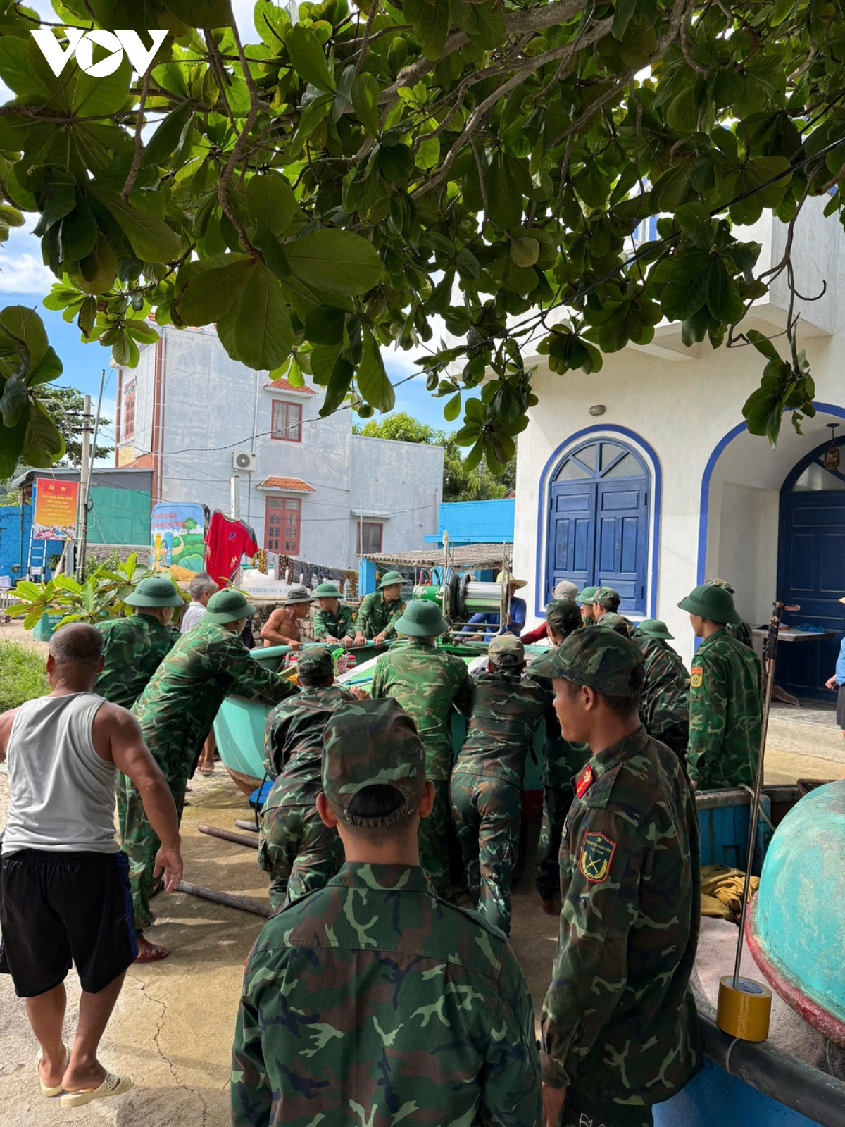 Bộ đội giúp dân đưa phương tiện lên bờ an toàn.