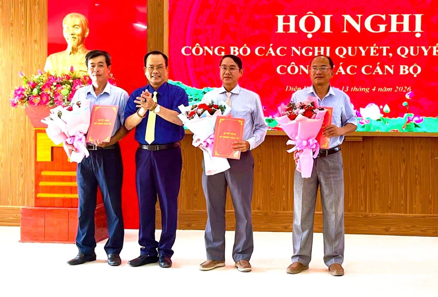 Hội nghị cũng công bố Quyết định của UBND tỉnh phê chuẩn kết quả bầu ông Phan Văn Trí - Phó Bí thư Đảng ủy, Chủ tịch UBND xã Diên Điền nhiệm kỳ 2021 - 2026 giữ chức vụ Chủ tịch UBND xã nhiệm kỳ 2026 - 2031; ông Nguyễn Đức Phú - Ủy viên Ban Thường vụ Đảng ủy xã, Phó Chủ tịch UBND xã Diên Điền nhiệm kỳ 2021 - 2026 giữ chức vụ Phó Chủ tịch UBND xã nhiệm kỳ 2026 - 2031; ông Ngô Trung Việt - Ủy viên Ban Chấp hành Đảng bộ xã, Phó Chủ tịch UBND xã Diên Điền nhiệm kỳ 2021 - 2026 giữ chức vụ Phó Chủ tịch UBND xã nhiệm kỳ 2026 - 2031.
