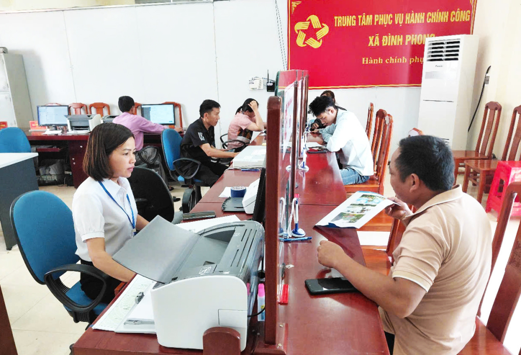 Người dân đến làm thủ tục hành chính tại Trung tâm Phục vụ hành chính công xã Đình Phong.