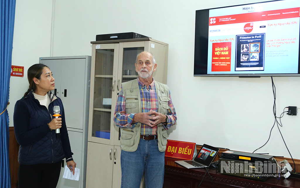Đại diện lãnh đạo Ban quản lý Rừng phòng hộ đặc dụng Ninh Bình phát biểu tại hội nghị.