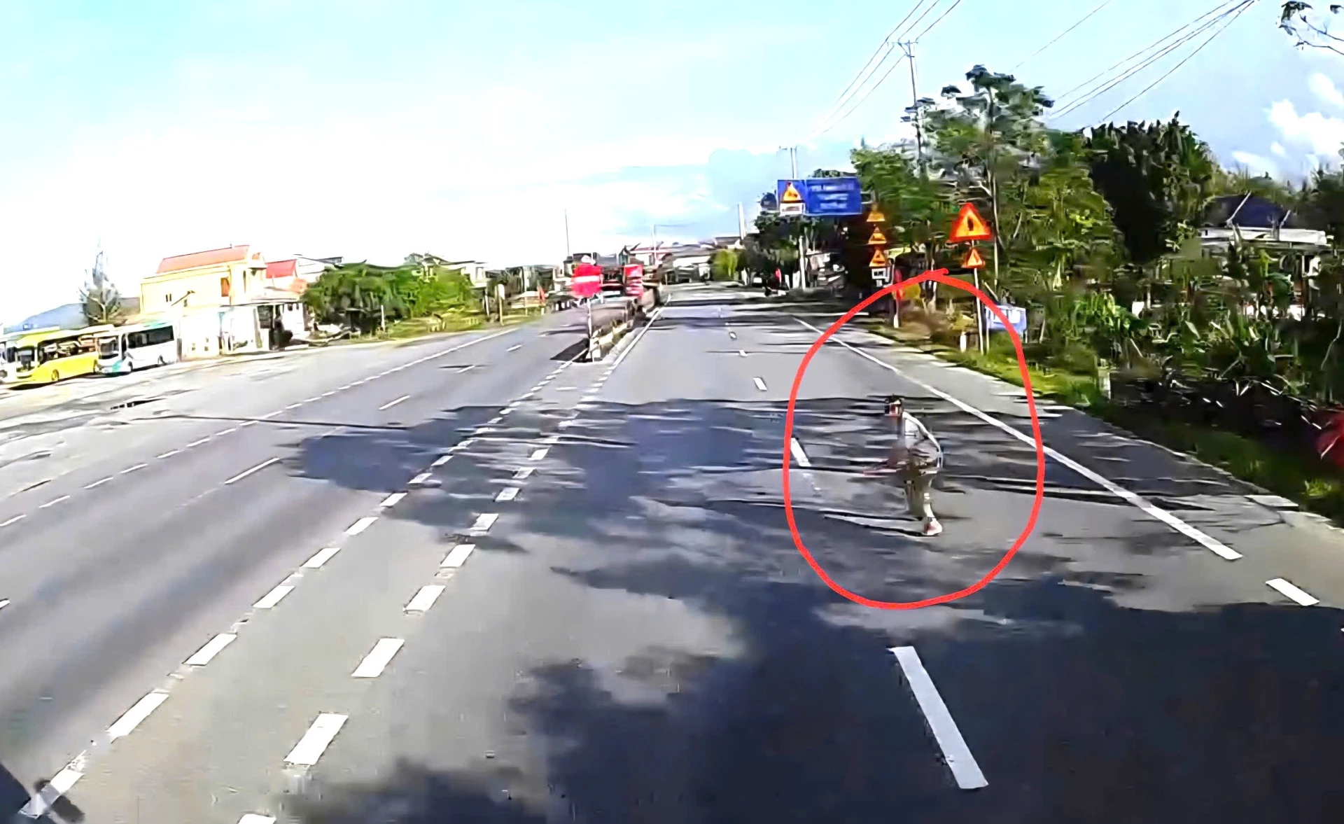 Hình ảnh ông N.T.T. nghi lao vào xe tải tự tử được ghi lại bằng camera hành trình - Ảnh: Trung Đức