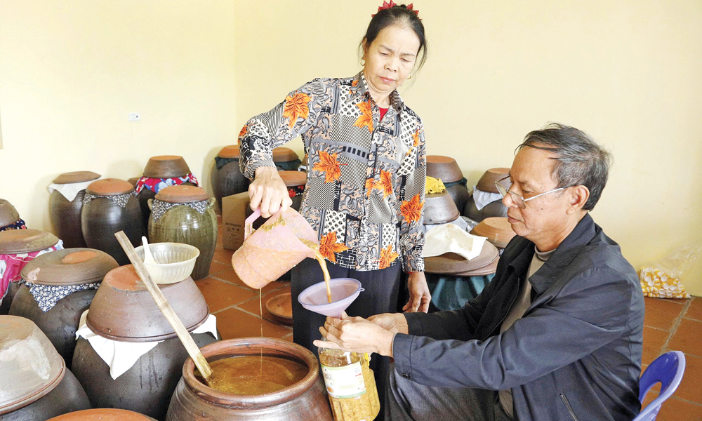 Hợp tác xã tương Tiên La đóng chai sản phẩm bán ra thị trường.