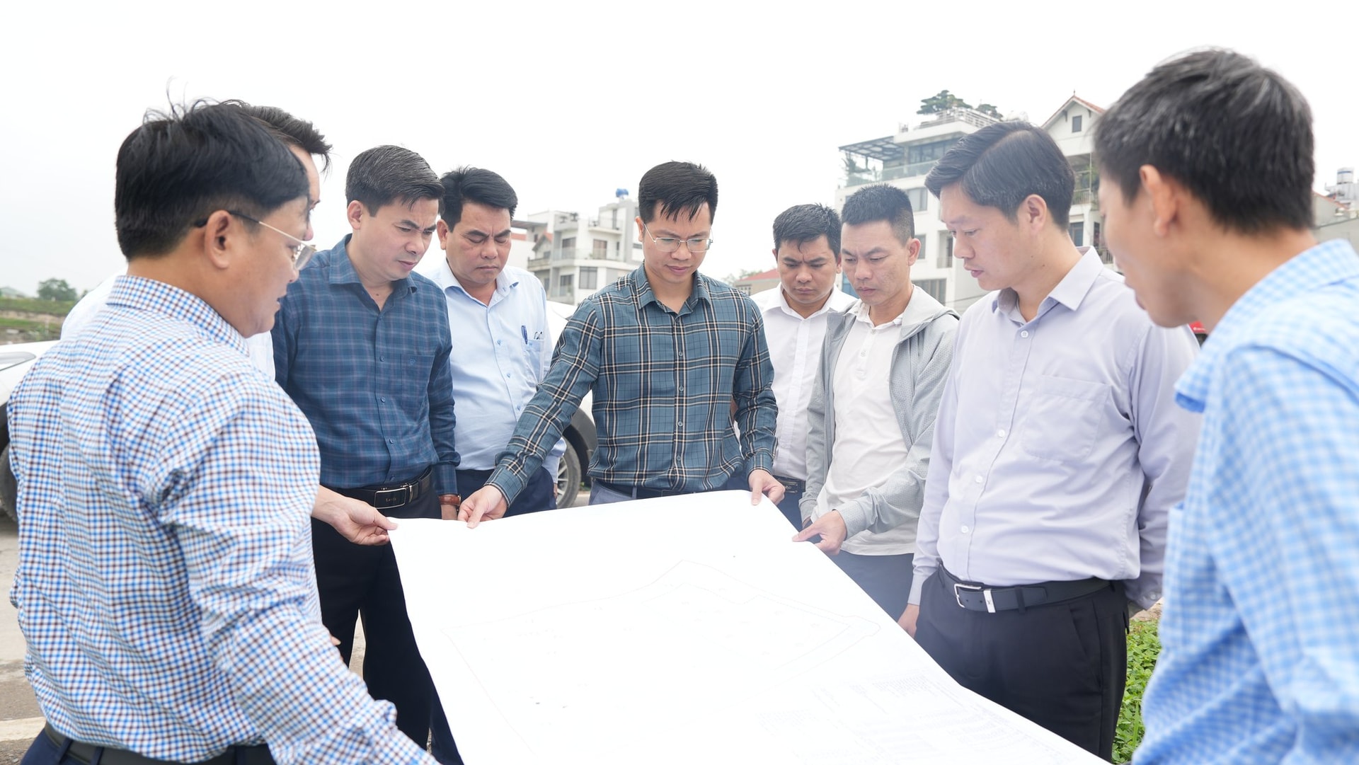 Lãnh đạo xã Dương Hòa kiểm tra tiến độ triển khai thực hiện các dự án đưa vào kế hoạch đấu giá quyền sử dụng và dự án đầu tư công năm 2026 trên địa bàn xã. Ảnh: PN