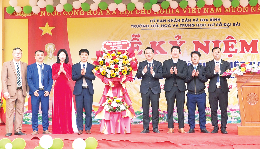 Lãnh đạo xã Gia Bình chúc mừng Trường Tiểu học và Trung học cơ sở Đại Bái nhân lễ kỷ niệm Ngày Nhà giáo Việt Nam (20/11).