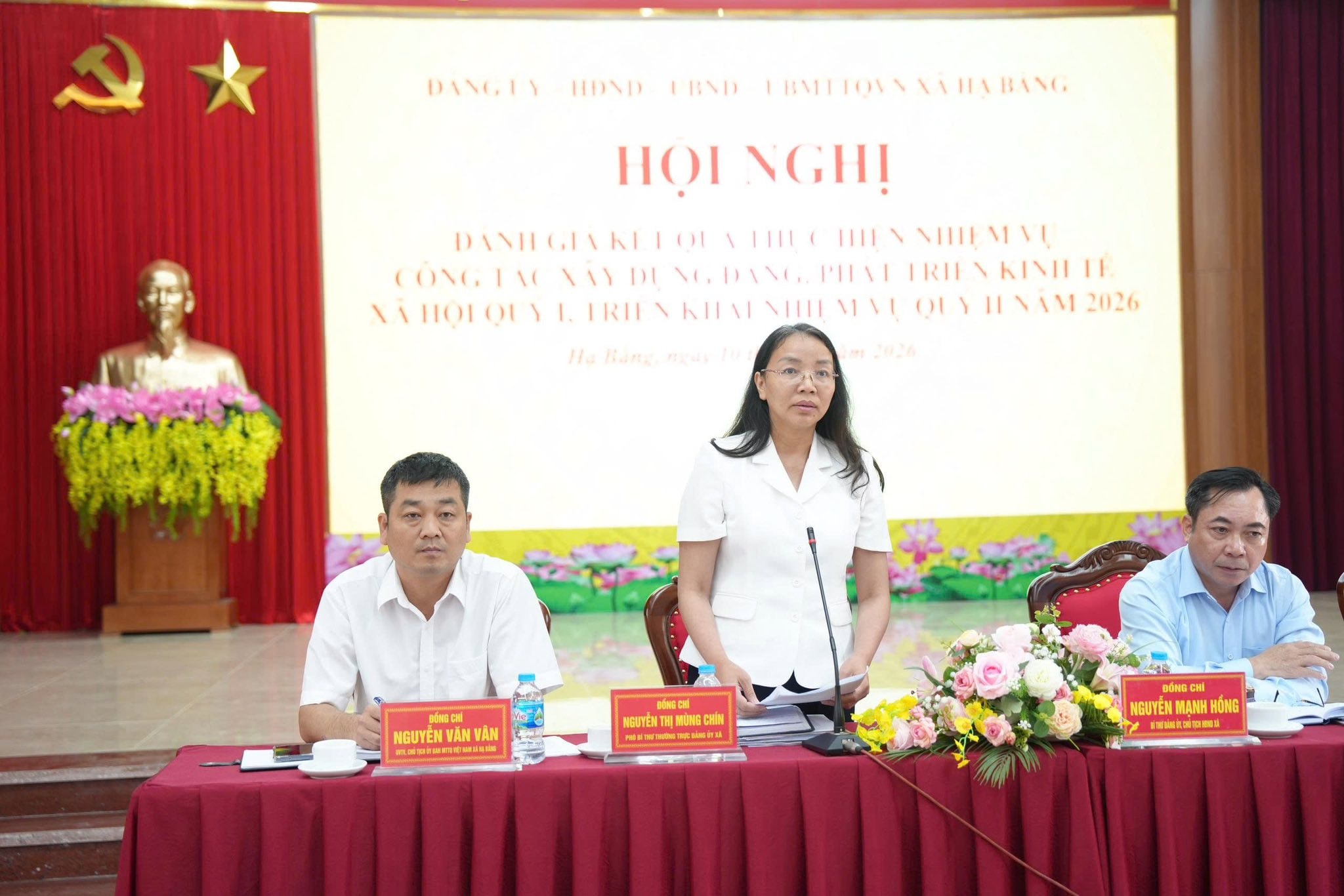 Quý I-2026, toàn xã Hạ Bằng đã triển khai 297 nhiệm vụ do thành phố giao, hoàn thành 218 nhiệm vụ, không có nhiệm vụ quá hạn; hoàn thành 173/217 nhiệm vụ cấp xã giao. Công tác lãnh đạo, chỉ đạo được đổi mới theo phương châm "6 rõ", vận hành đồng bộ trên 4 trục: Đảng ủy - HĐND - UBND - Ủy ban MTTQ và các đoàn thể.