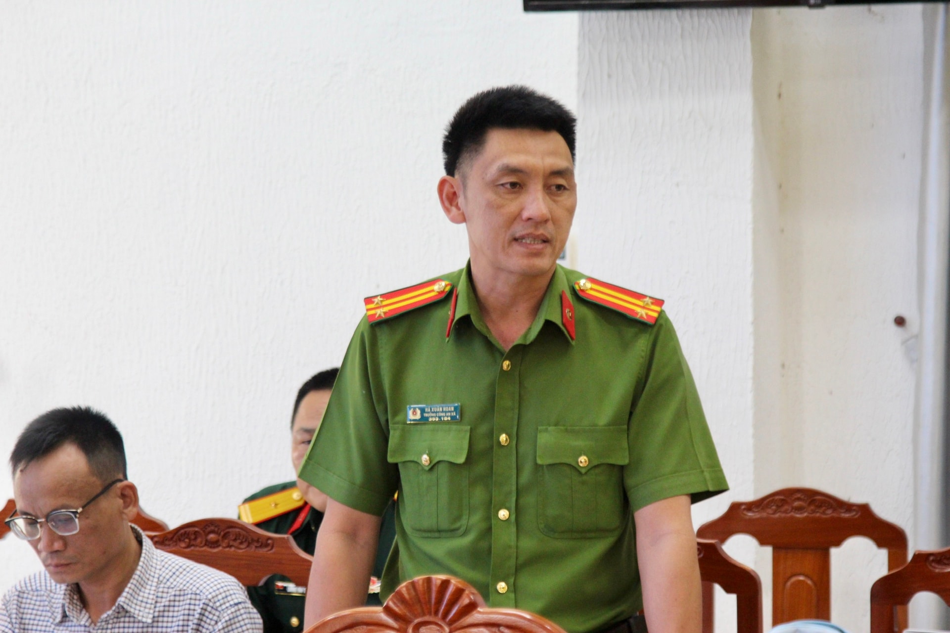 Đại diện Công an xã Hàm Tân báo cáo về tình hình an ninh trật tự trên địa bàn xã