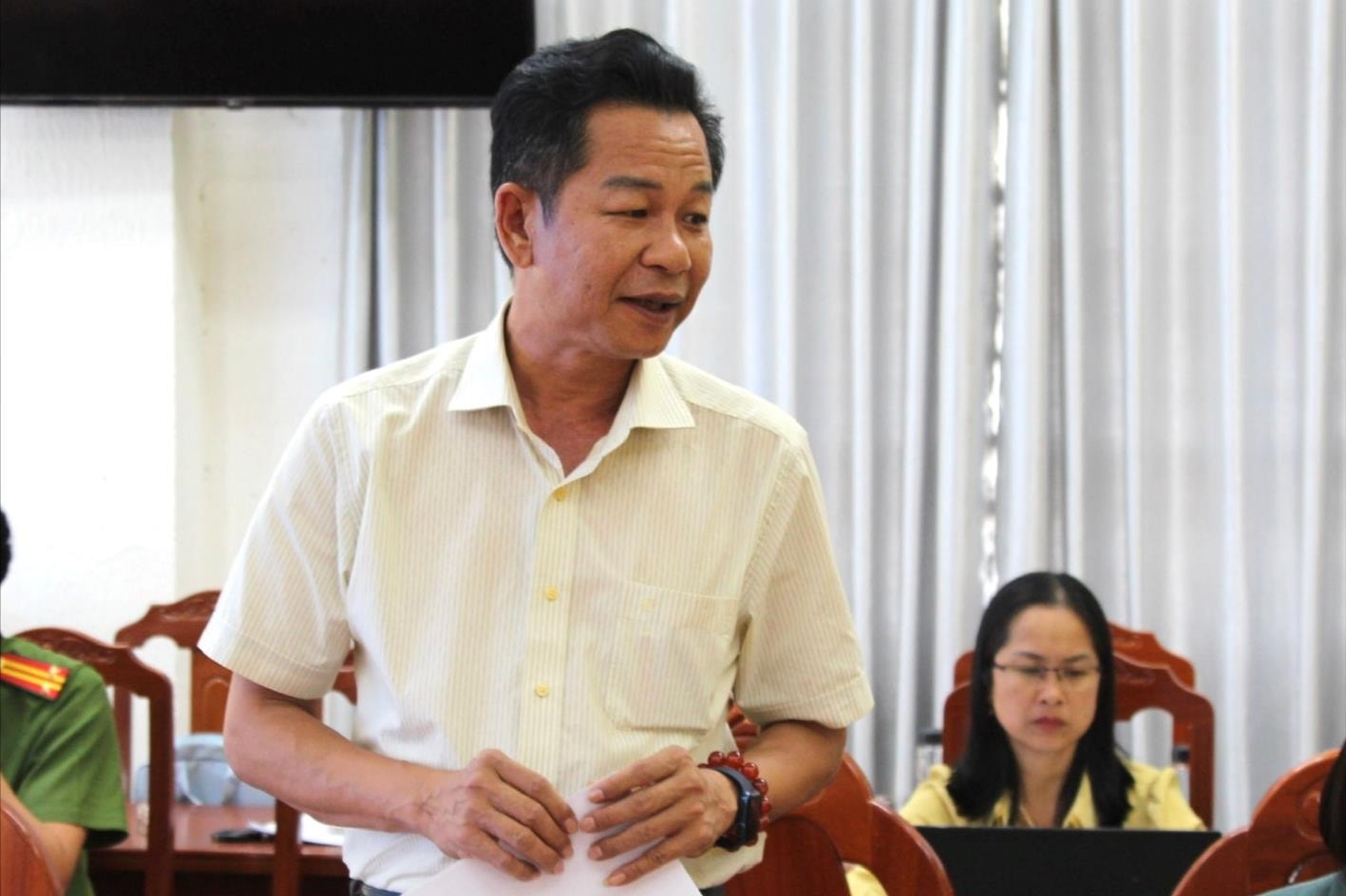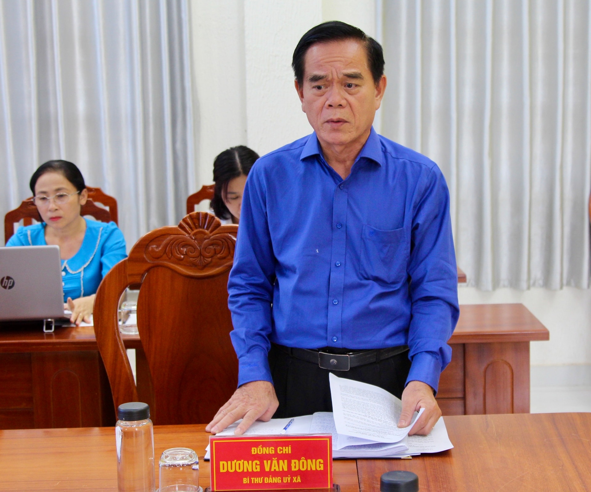 Bí thư Đảng ủy xã Hàm Tân Dương Văn Đông báo cáo tại buổi làm việc