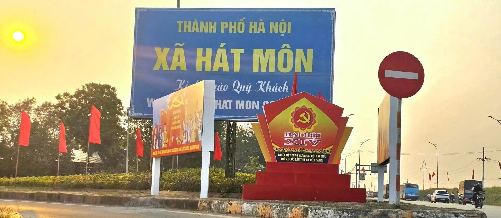 Xã Hát Môn rực rỡ cờ hoa chào mừng Đại hội Đảng toàn quốc lần thứ XIV. Ảnh: Hoàng Thoàn