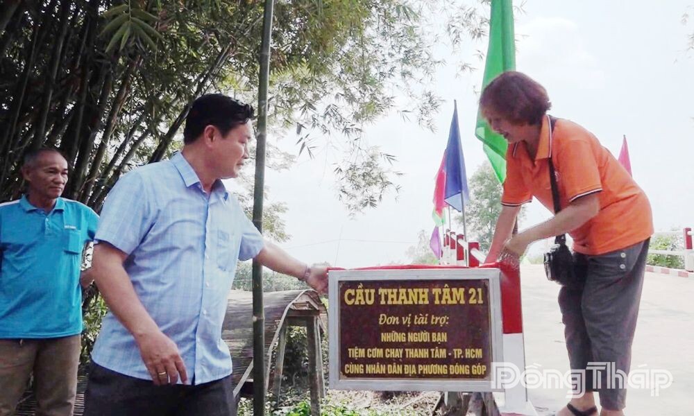 Trong đó, cầu Thanh Tâm 21 bắc qua kênh 19-5, thuộc ấp Mỹ Chánh 4 (dài 26 m, rộng 3,5 m, tải trọng 3,5 tấn), do nhóm những người bạn Tiệm cơm chay Thanh Tâm (TP. Hồ Chí Minh) tài trợ xây dựng.