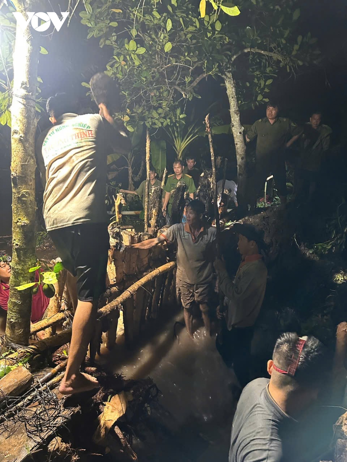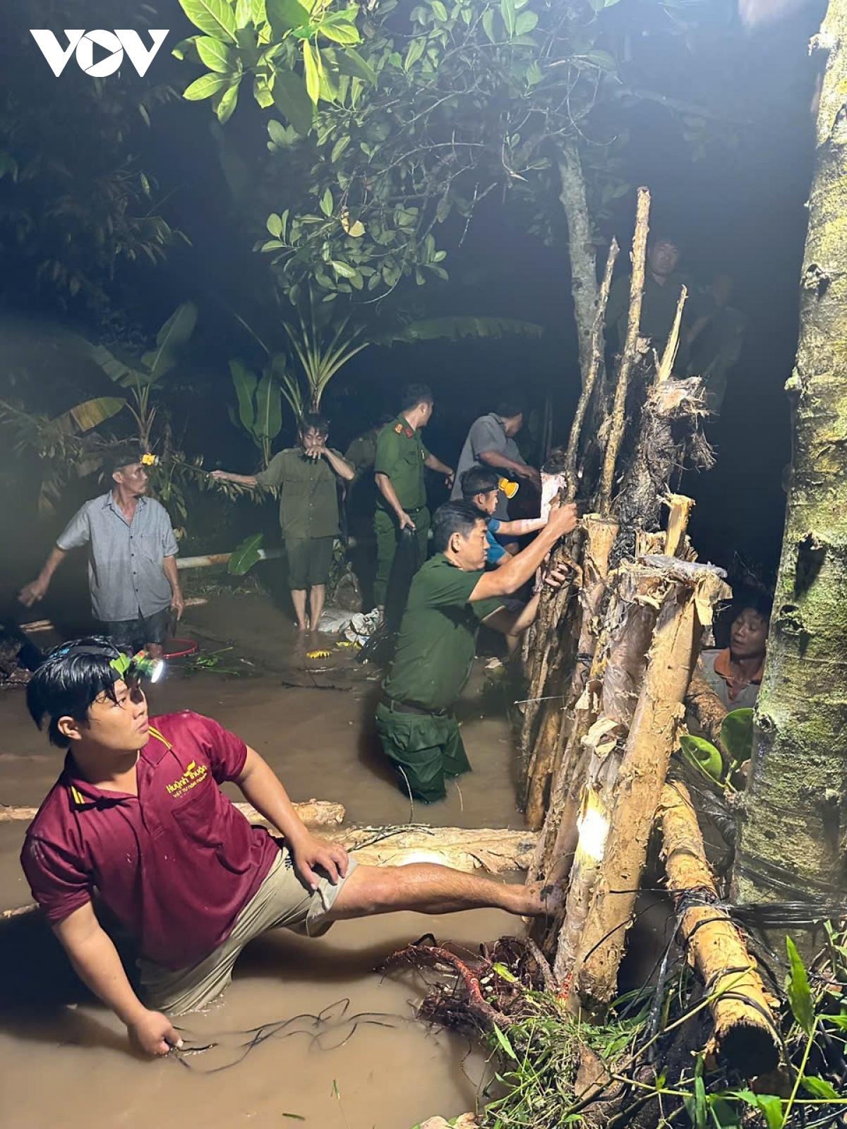 Lực lượng khẩn trương chống nước tràn bảo vệ vườn cây ăn trái ngay đêm tối