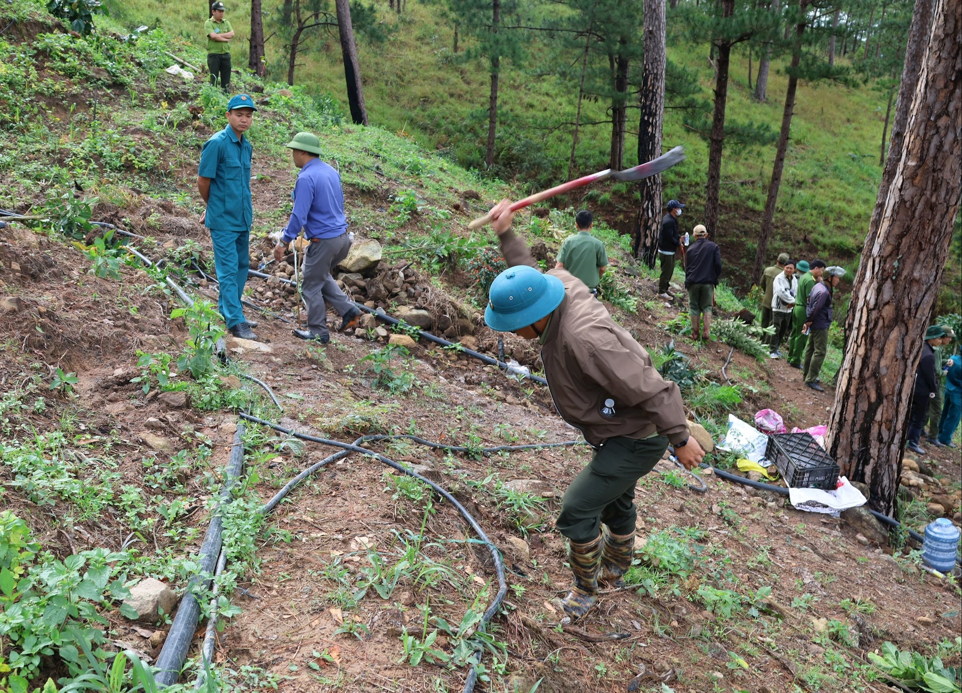 Lực lượng chức năng xác định, tại khoảnh 4, Tiểu khu 267C, do Ban Quản lý rừng phòng hộ Đức Trọng quản lý có 2.640m2 đất đã bị lấn chiếm để trồng các loại cây như mít, cam, đào và lắp đặt hệ thống ống tưới nước.
