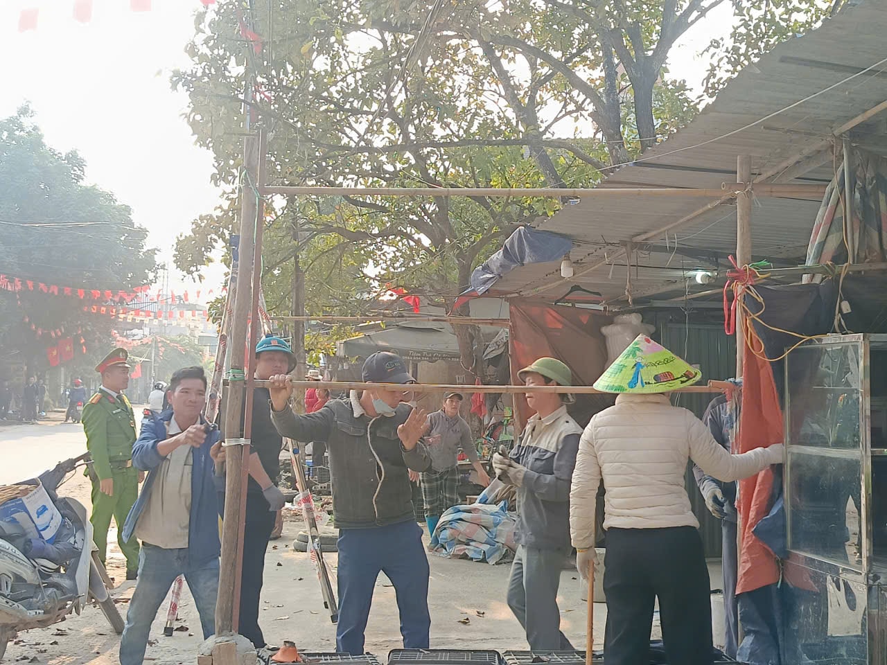 UBND xã tổ chức rà soát, lập danh sách đầy đủ các hộ, cá nhân vi phạm, yêu cầu ký cam kết chấm dứt việc họp chợ, buôn bán không đúng nơi quy định và không tái vi phạm; thành lập tổ công tác liên ngành giải tỏa đồng loạt; tháo dỡ toàn bộ mái che, bạt tạm, công trình trái phép; thu dọn hàng hóa vi phạm, xử phạt nghiêm trường hợp không chấp hành theo quy định pháp luật.