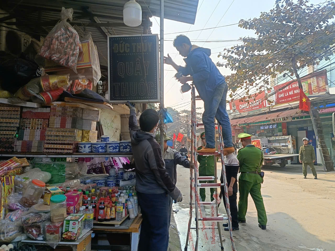 Đoàn công tác trực tiếp xuống từng điểm vi phạm để tuyên truyền, nhắc nhở, giải thích cho các hộ kinh doanh và người dân hiểu rõ quy định của pháp luật, yêu cầu các hộ tự giác tháo dỡ mái che, bạt tạm, công trình tạm trái phép; di chuyển hàng hóa, phương tiện ra khỏi khu vực vi phạm; chấm dứt ngay việc họp chợ, buôn bán không đúng nơi quy định.