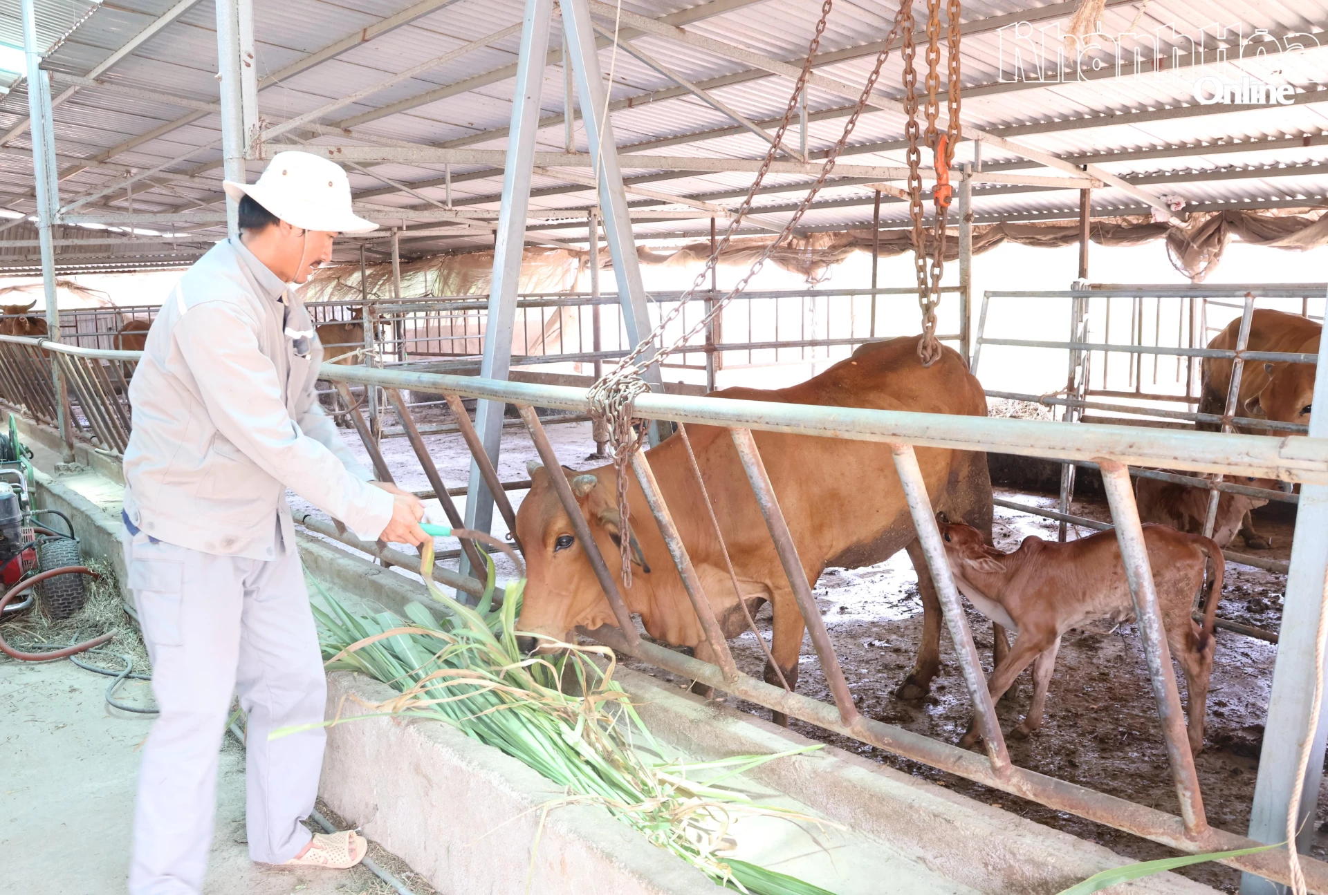 Một số mô hình vườn - ao - chuồng trên địa bàn xã bắt đầu được hình thành (Trong ảnh: Ông Phạm Minh Chính, xã Hòa Trí chăm sóc đàn bò).