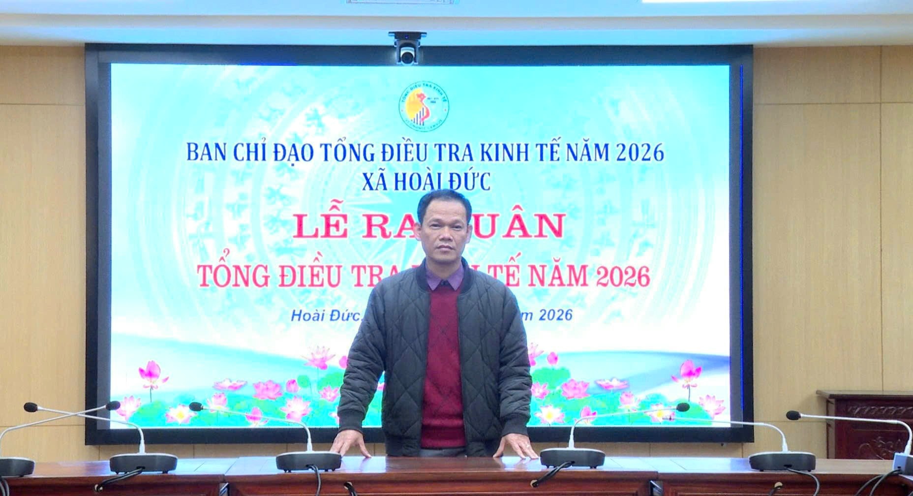 Tại buổi lễ, Phó Trưởng phòng Kinh tế xã Hoài Đức Vũ Trọng Hùng thông qua Quyết định số 2923/QĐ-UBND ngày 31-12-2025 của UBND xã Hoài Đức về việc thành lập Ban Chỉ đạo tổng điều tra kinh tế năm 2026 xã Hoài Đức và kế hoạch tuyên truyền tổng điều tra kinh tế năm 2026 trên địa bàn xã.