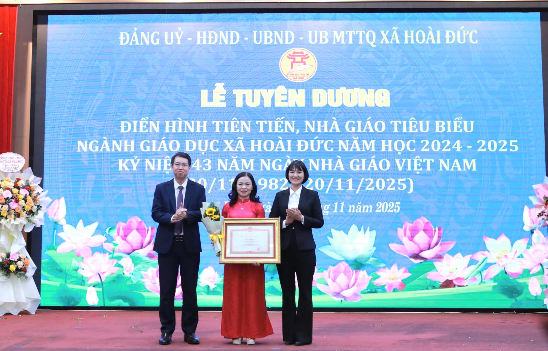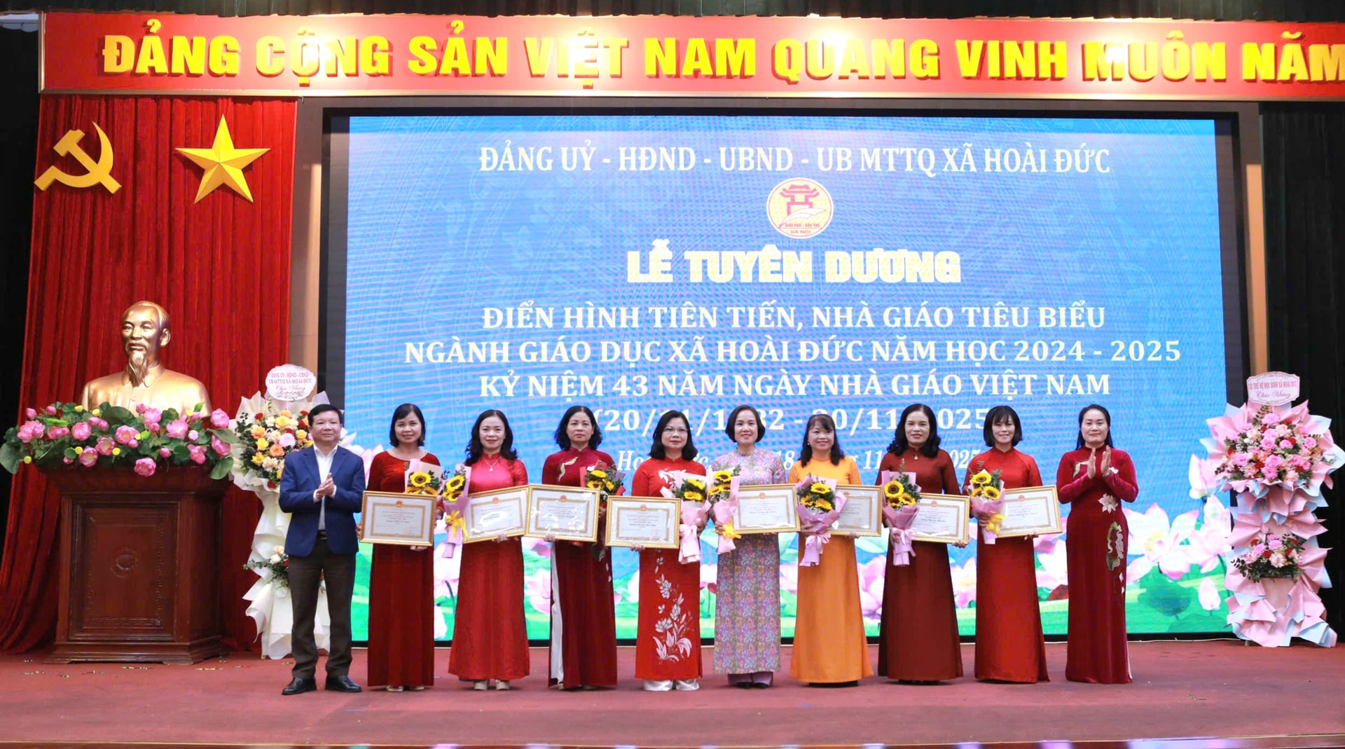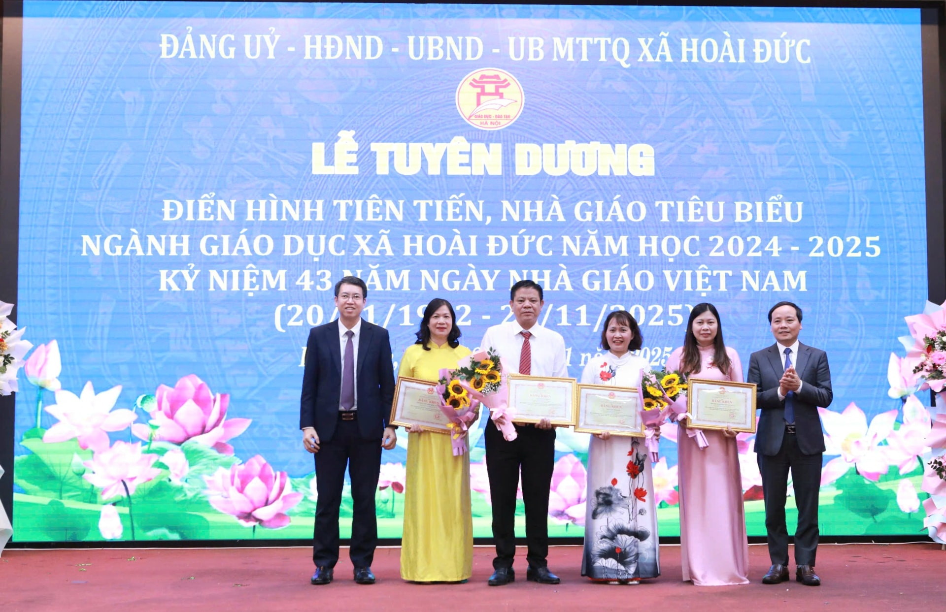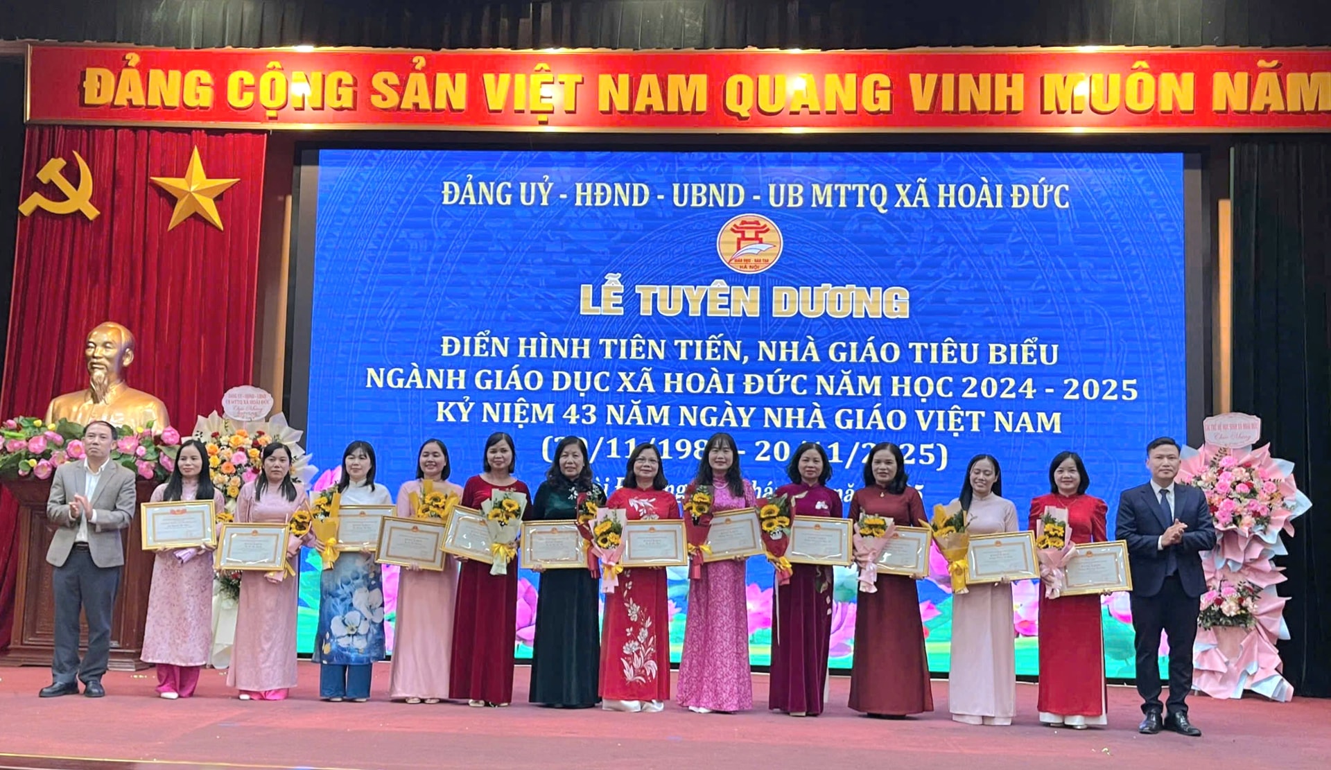 Tại buổi lễ, nhiều đơn vị, cá nhân ngành Giáo dục Hoài Đức có thành tích xuất sắc của được nhận khen thưởng, vinh danh, gồm: Trường Mầm non Đức Thượng, Trường Mầm non Hoa Sen, Trường Mầm non Kim Chung B. Trường Mầm non Đức Giang A, Trường Tiểu học Kim Chung A, Trường Tiểu học Kim Chung B, Trường Tiểu học Di Trạch, Trường THCS Trạm Trôi, Trường THCS Di Trạch.