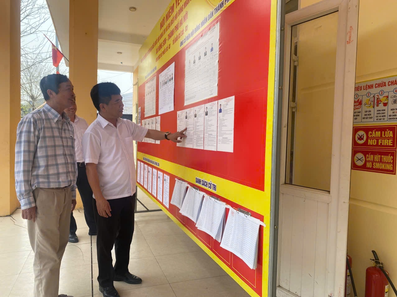 Tại các điểm bỏ phiếu, công tác trang trí khánh tiết được thực hiện trang nghiêm với pano, cờ Đảng, cờ Tổ quốc; việc trang trí được triển khai đồng bộ tại 35 điểm bầu cử và trụ sở Thường trực Ủy ban Bầu cử xã.