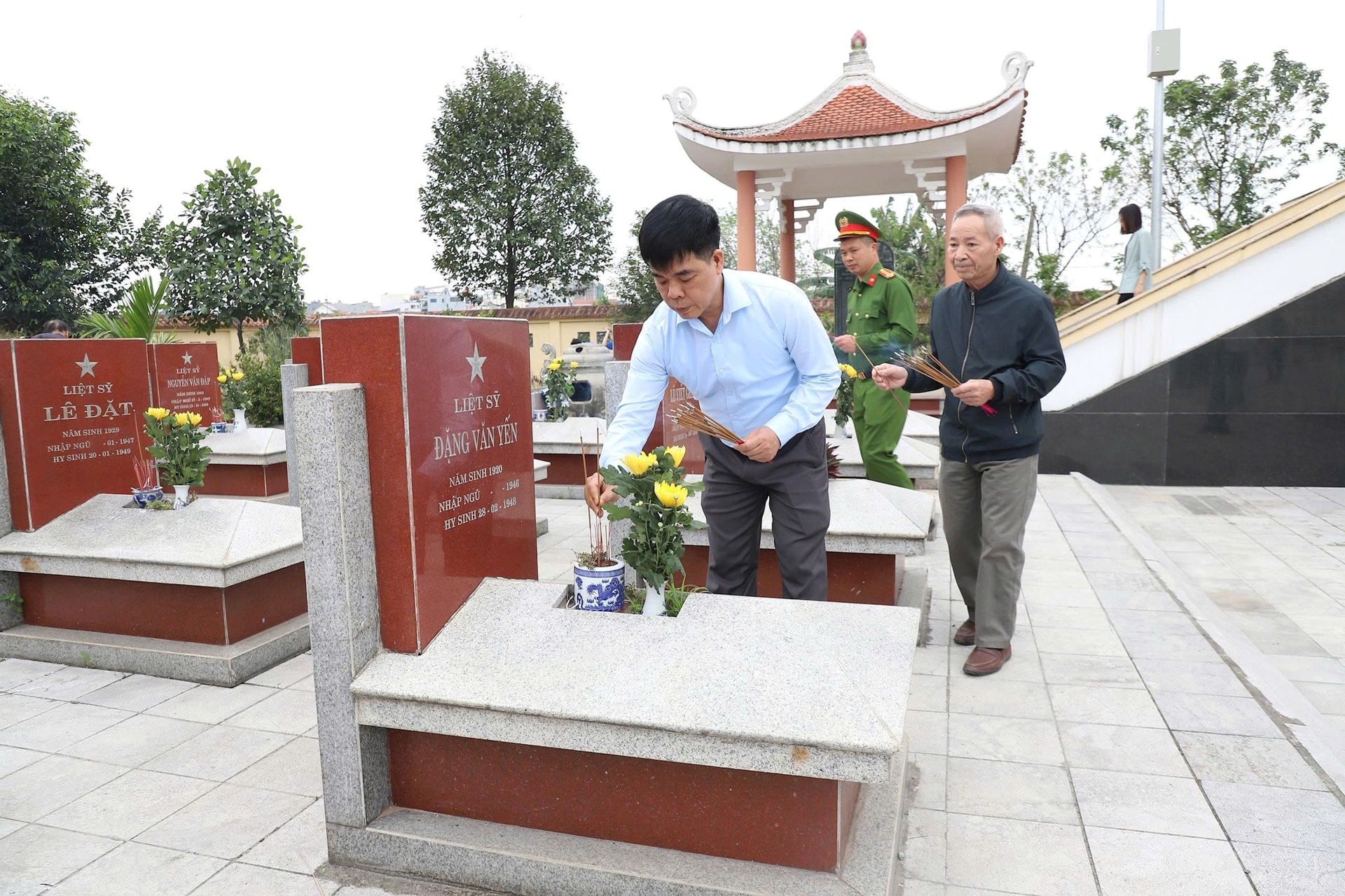 Trong không khí trang nghiêm, các đại biểu thành kính dâng hoa, dâng hương tại tượng đài và từng phần mộ liệt sĩ, bày tỏ lòng biết ơn đối với những người con ưu tú của quê hương đã anh dũng chiến đấu, hy sinh vì độc lập, tự do của Tổ quốc.