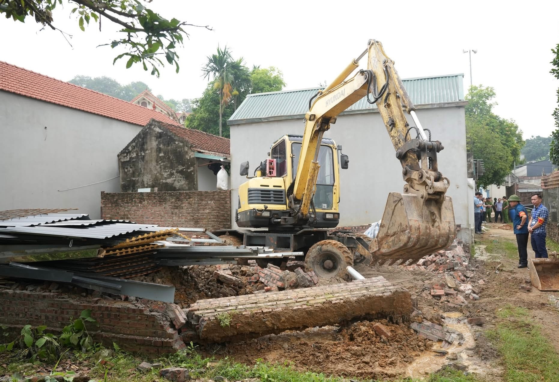 Lực lượng chức năng xã Hưng Đạo tổ chức cưỡng chế, phá dỡ công trình vi phạm đất đai, trật tự xây dựng. Ảnh: PV
