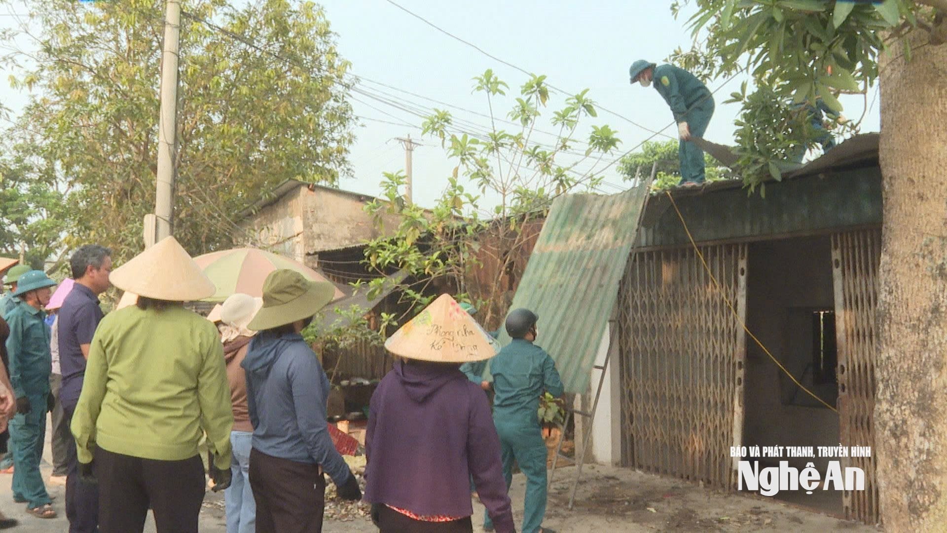 Lãnh đạo xã Hưng Nguyên Nam trực tiếp chỉ đạo công tác tháo dỡ. Ảnh: Trần Lịch