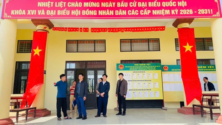 Khu vực bỏ phiếu số 3, thôn Hiền Giáo đang hoàn tất những khâu cuối cùng cho ngày bầu cử. Ảnh: VB