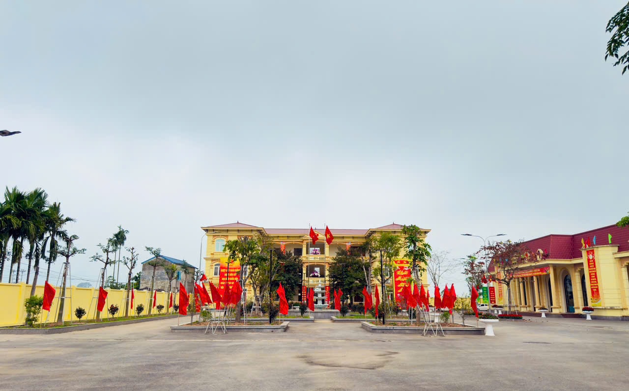 Trụ sở Đảng ủy xã Hương Sơn rực rỡ cờ hoa. Ảnh: VB