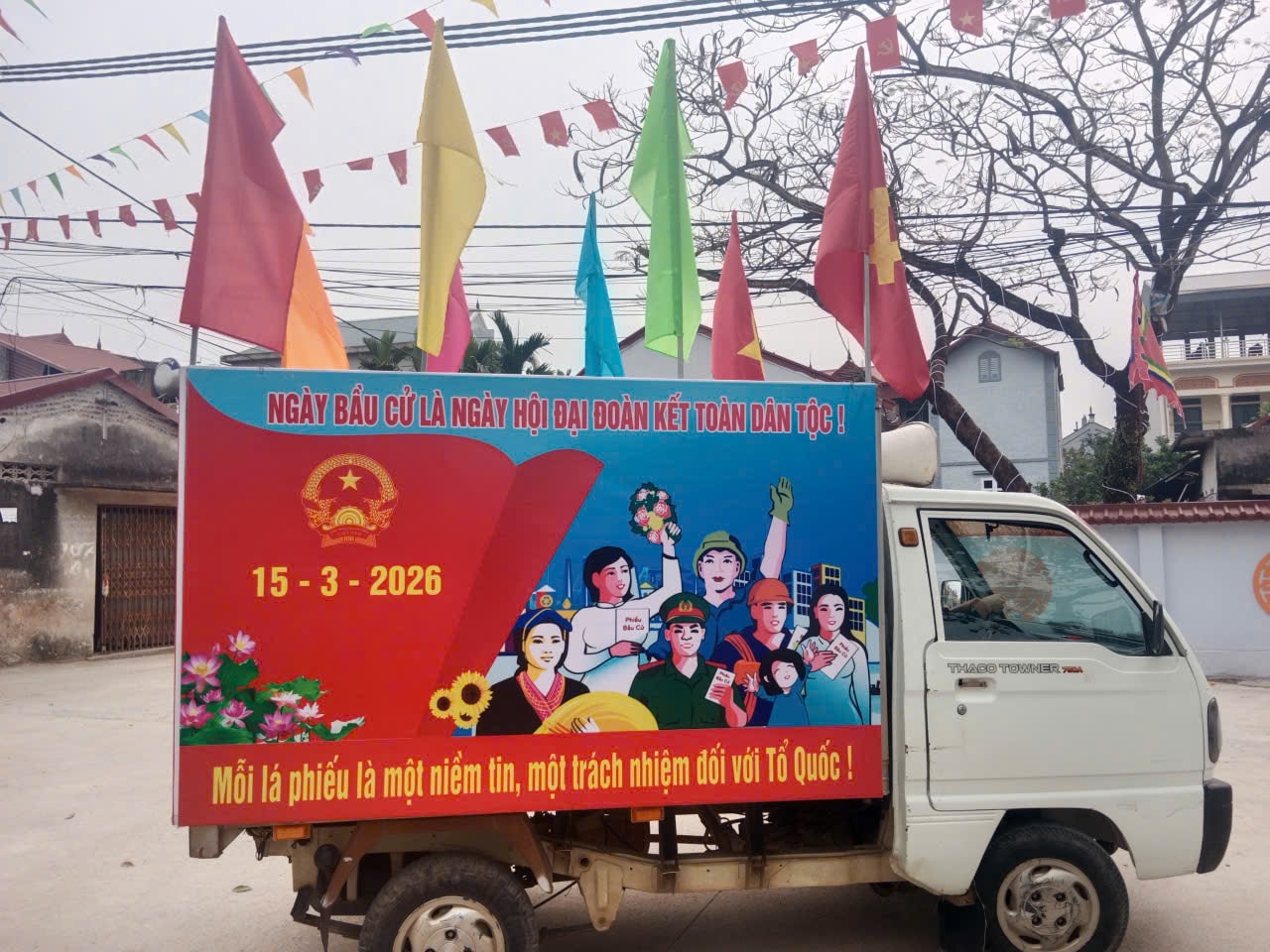 Xe tuyên truyền lưu động của xã Hương Sơn tích cực truyền tải thông tin về bầu cử. Ảnh: VB