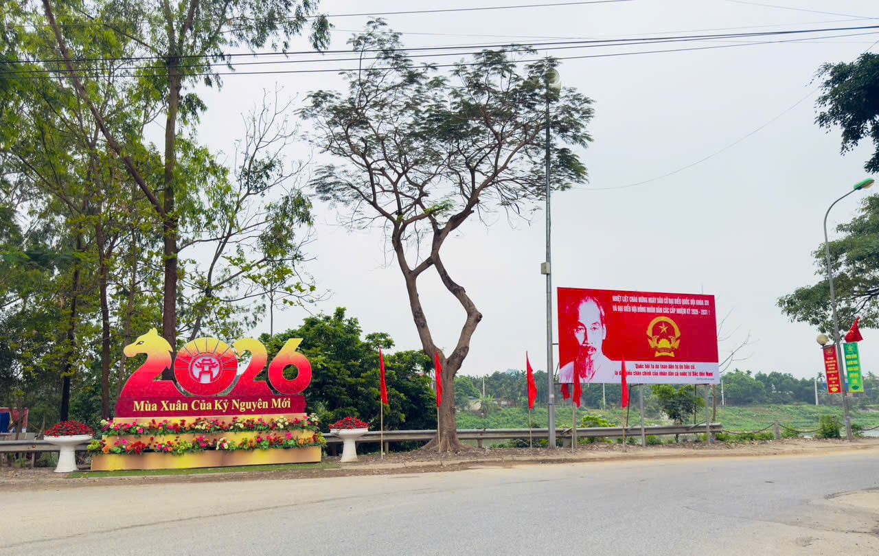 Các tuyến đường tại xã Hương Sơn được trang trí trang nghiêm. Ảnh: VB