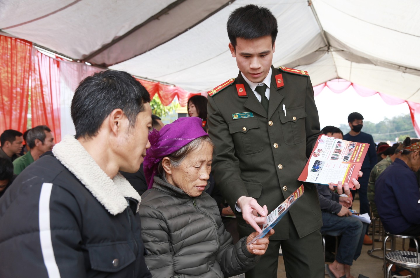 Cán bộ Công an tỉnh phát tờ rơi tuyên truyền pháp luật đến người dân tại chương trình