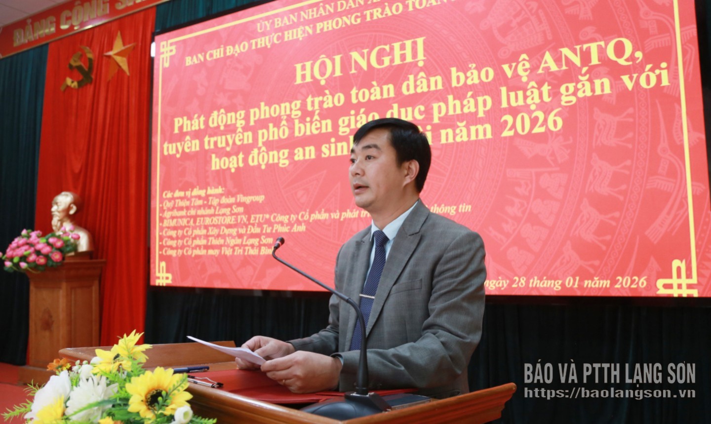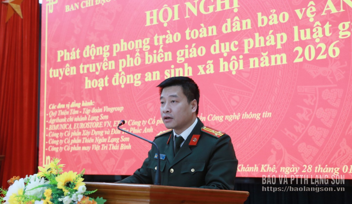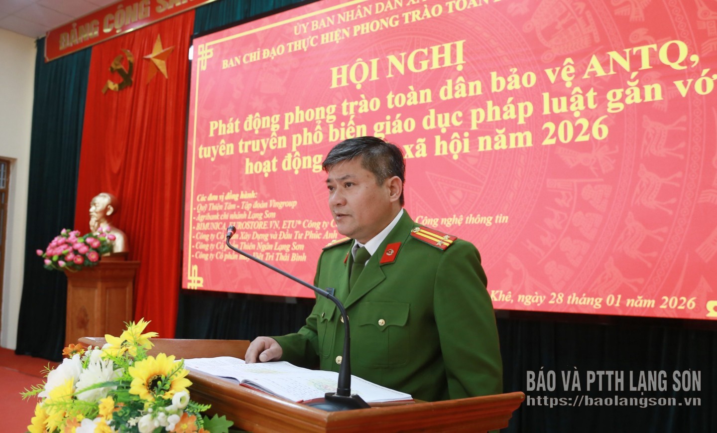Lãnh đạo Công an xã Khánh Khê thay mặt Ban Chỉ đạo phát động phong trào “Toàn dân bảo vệ an ninh Tổ quốc” năm 2026