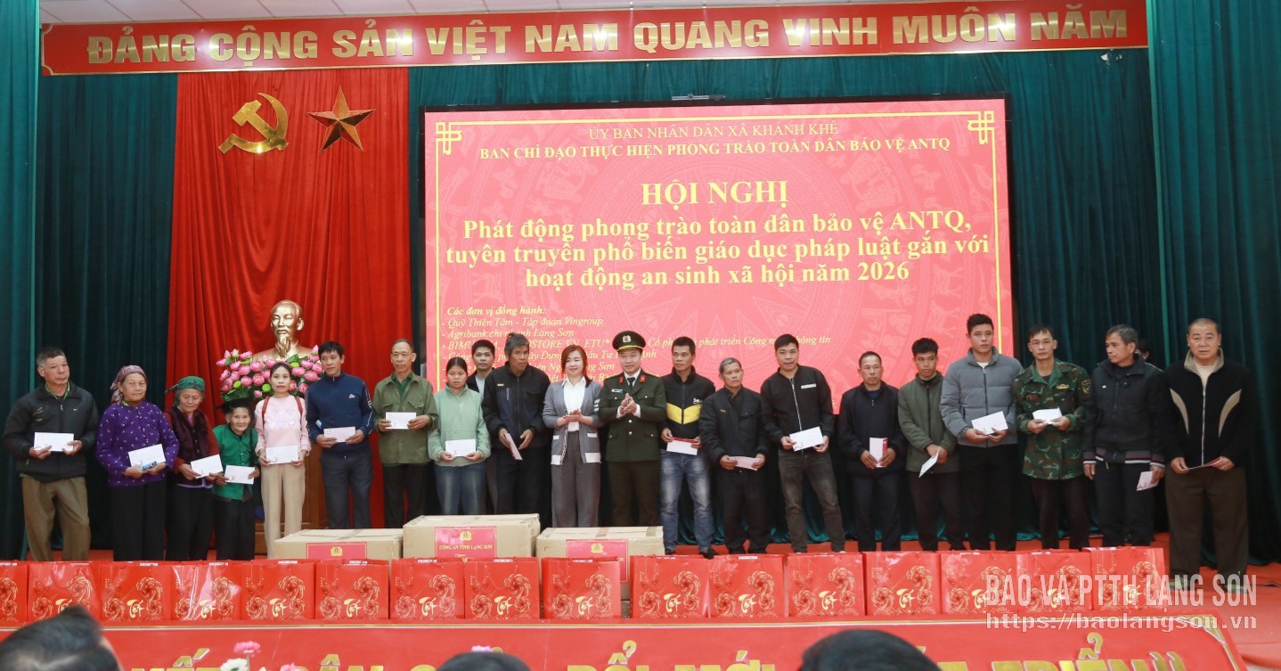Trong chương trình, Công an tỉnh và các đơn vị tài trợ đã tặng tổng cộng 238 suất quà của cho hộ nghèo, cận nghèo, gia đình chính sách, đối tượng bảo trợ xã hội và 300 bộ quần áo cho học sinh trên địa bàn xã Khánh Khê nhân dịp Tết Nguyên đán Bính Ngọ năm 2026.