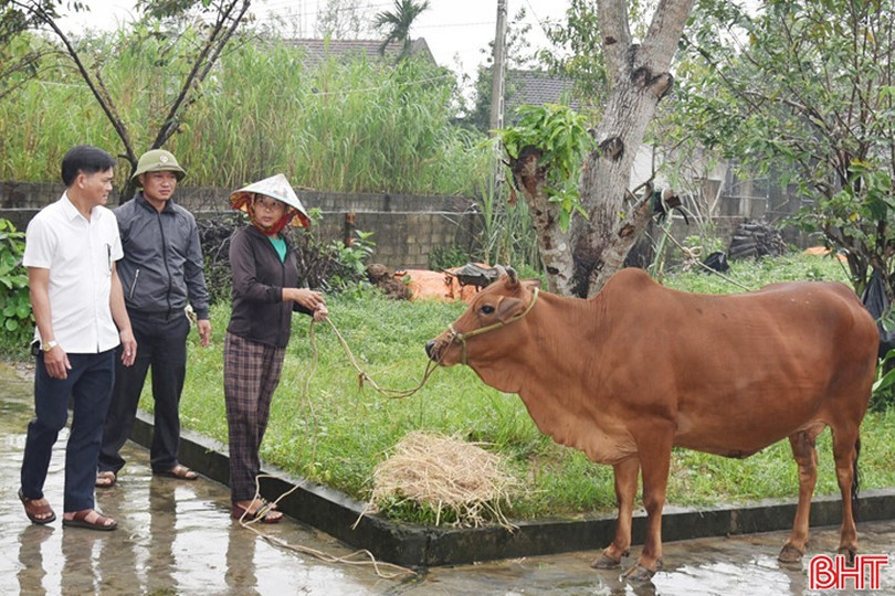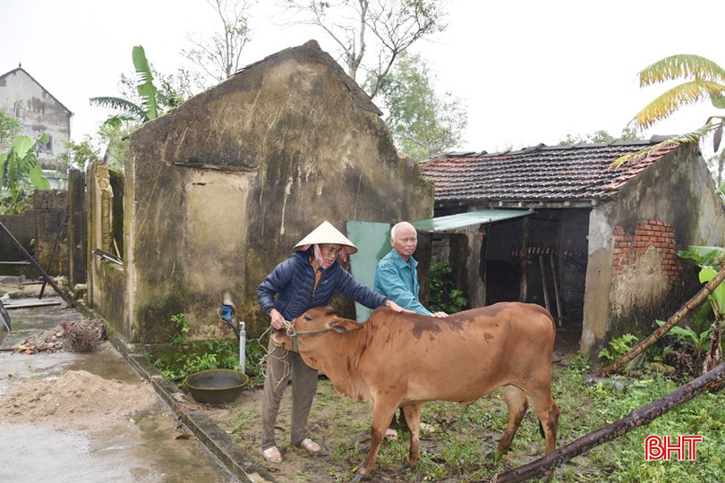 May mắn, với phương châm “Vì người nghèo”, cấp ủy, chính quyền, các tổ chức đoàn thể, thôn xóm cùng các tấm lòng thơm thảo khắp mọi nơi đã giúp đỡ ông bà về ngày công, 20 triệu đồng mua vật liệu sửa nhà, tiếp tế thực phẩm trong các ngày sau mưa bão… Đặc biệt, thông qua Hội Nông dân xã Lộc Hà, Chương trình mục tiêu quốc gia giảm nghèo bền vững giai đoạn 2021 – 2025 (gọi tắt là Chương trình giảm nghèo) đã hỗ trợ cho gia đình khốn khó này một con bê cái làm giống trị giá 16 triệu đồng với mục tiêu “tiếp sức” cho họ vươn lên.