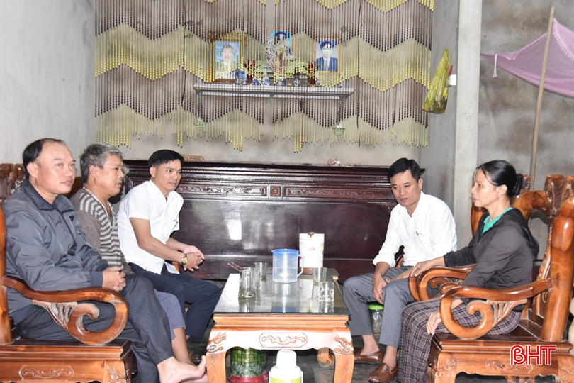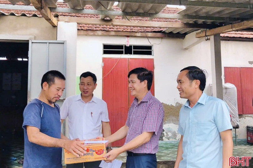 Lãnh đạo xã Lộc Hà thăm hỏi, động viên, tặng quà các hộ nghèo, cận nghèo bị thiệt hại sau các đợt thiên tai.