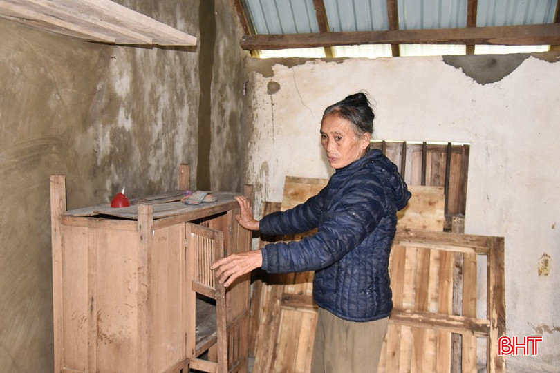 Sau bão số 10, ngôi nhà của gia đình bà Nguyễn Thị Giảng ở thôn Hòa Bình bị hư hỏng khá nặng, khiến cuộc sống càng thêm khó khăn, vất vả.