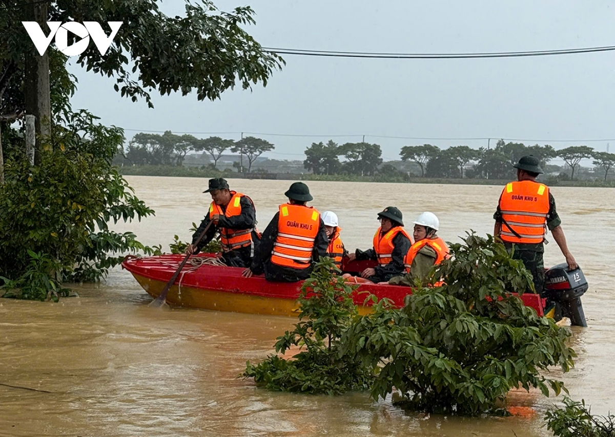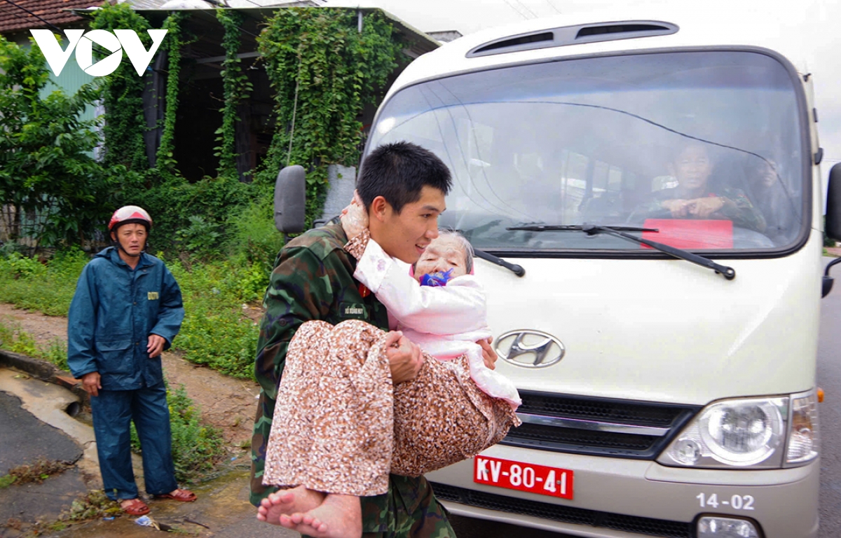 Bộ đội Quân khu 5 đưa bà con vùng ngập lụt đến nơi an toàn