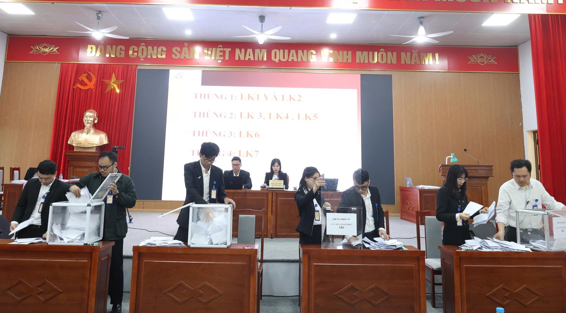 Kiểm phiếu kết quả đấu giá vòng 1. Ảnh: Hoàng Sơn