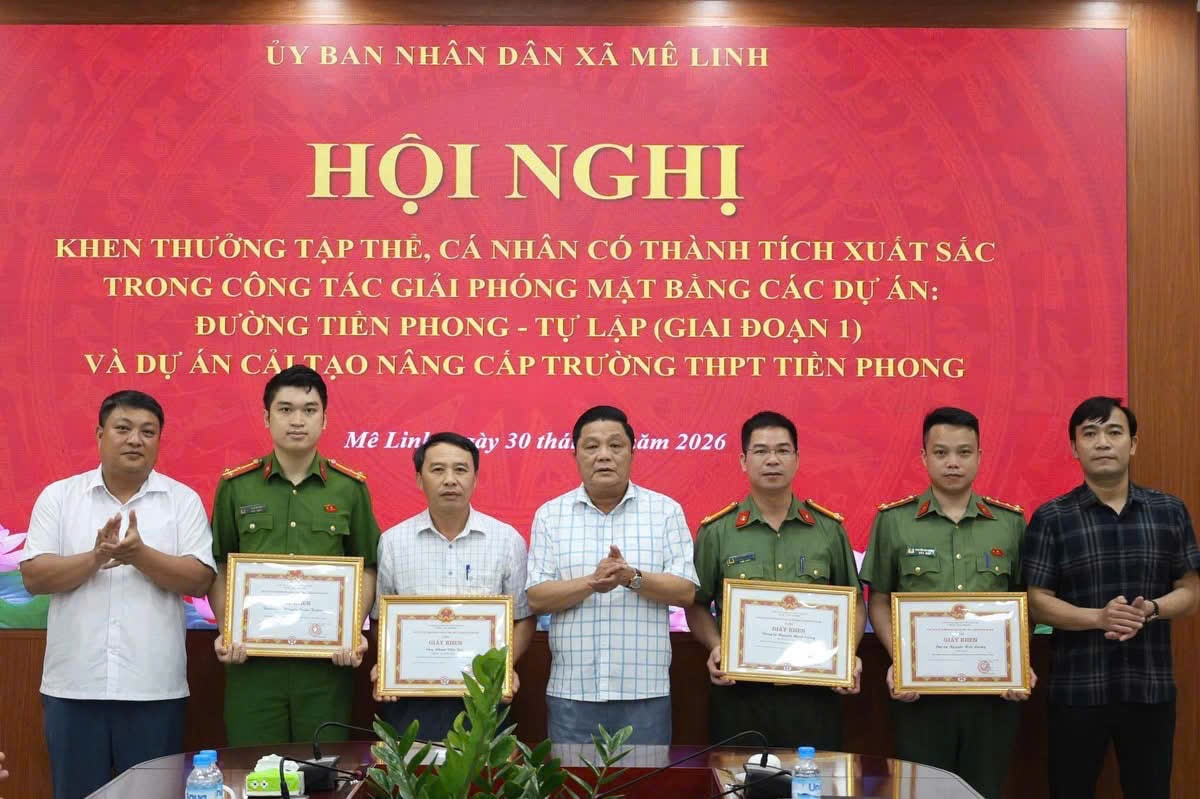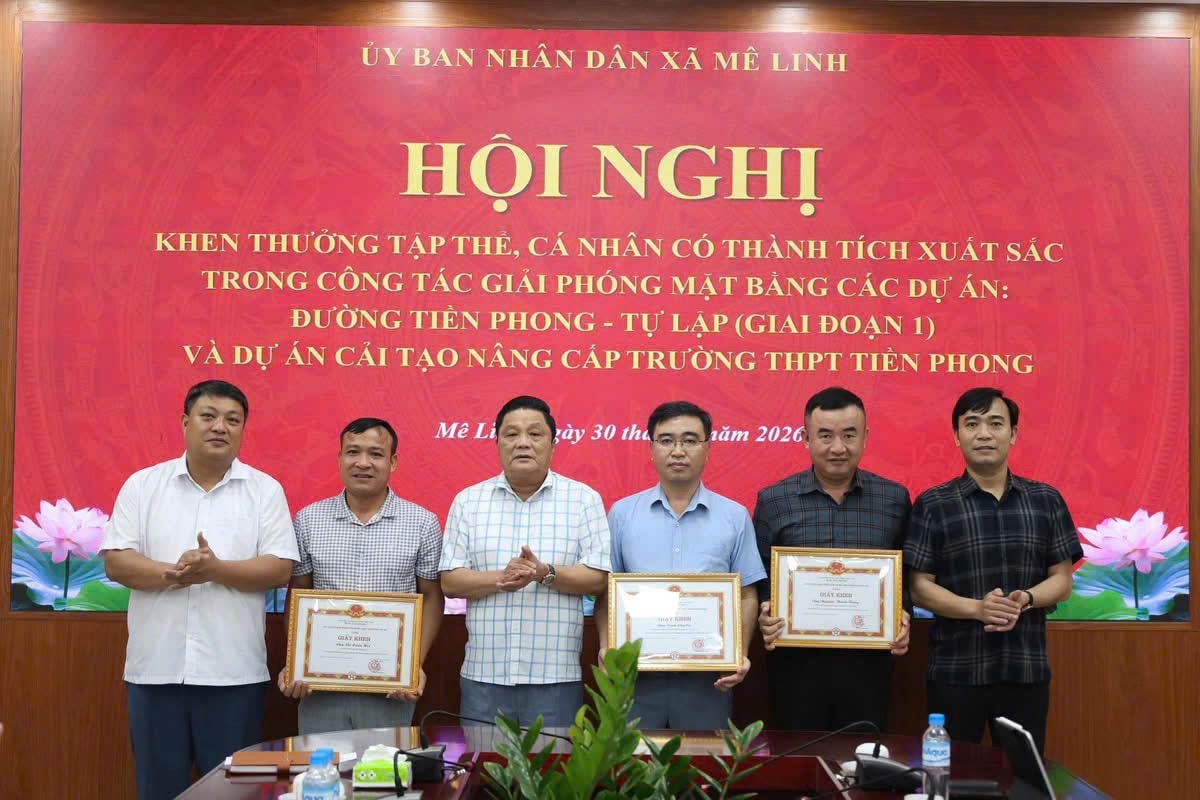 Nhằm ghi nhận, biểu dương những đóng góp tích cực trong công tác giải phóng mặt bằng các dự án trên địa bàn, UBND xã Mê Linh đã tặng Giấy khen cho 9 cá nhân tiêu biểu, trong đó có 7 cá nhân có thành tích xuất sắc trong công tác giải phóng mặt bằng Dự án đường Tiền Phong - Tự Lập và 2 cá nhân có thành tích trong công tác giải phóng mặt bằng Dự án xây dựng Trường THPT Tiền Phong.