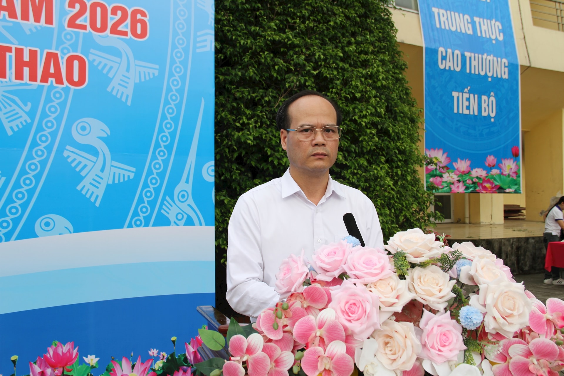 Phó Chủ tịch UBND xã Mỹ Đức Phạm Trọng Của phát động hưởng ứng Ngày chạy Olympic vì sức khỏe toàn dân năm 2026. Ảnh: VB