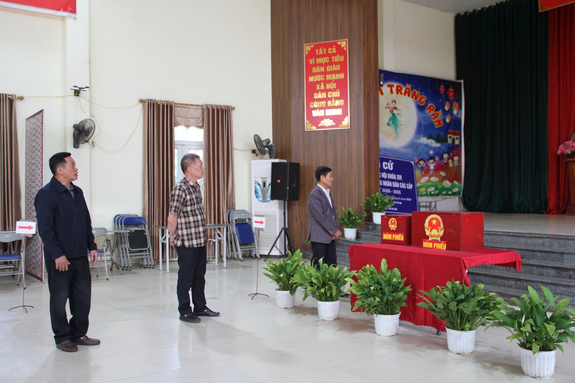 Nhà Văn hóa thôn Vài (khu vực bỏ phiếu số 18) đã sẵn sàng cho ngày hội lớn. Ảnh: VB
