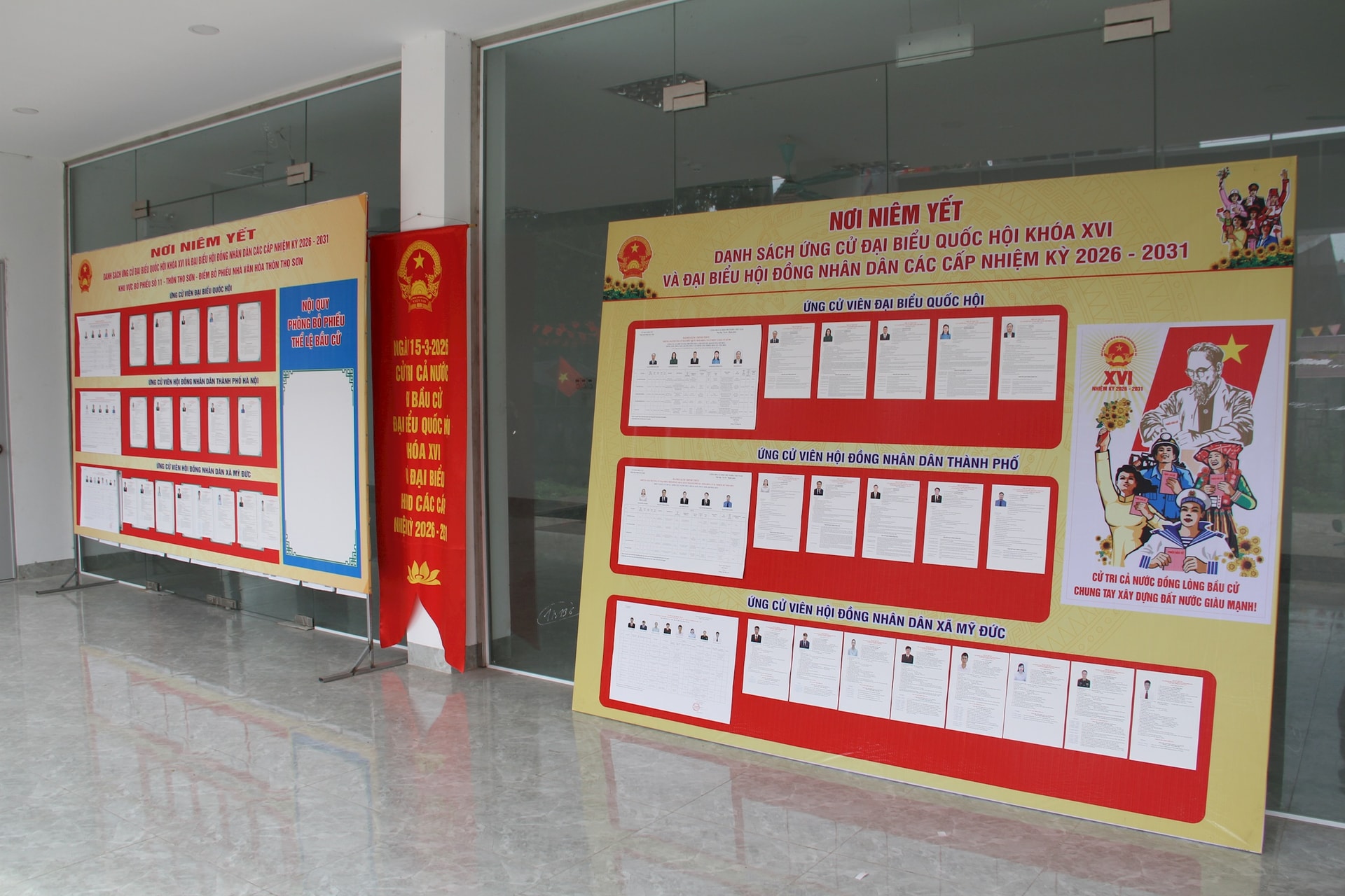 Danh sách chính thức ứng cử đại biểu Quốc hội khóa XVI và đại biểu HĐND các cấp được niêm yết tại Nhà văn hóa thôn Thọ Sơn (Khu vực bỏ phiếu số 11). Ảnh: VB