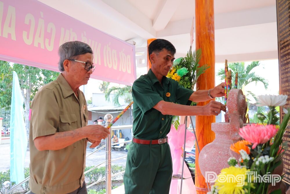 Lãnh đạo xã Mỹ Hiệp thành kính thắp nến, bày tỏ lòng biết ơn đối với sự hy sinh của các thế hệ cha anh.