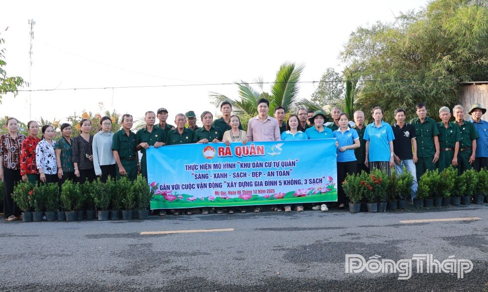 Xã Mỹ Quí ra quân thực hiện mô hình khu dân cư tự quản sáng - xanh - sạch - đẹp - an toàn” gắn với Cuộc vận động “Xây dựng gia đình 5 không, 3 sạch”.
