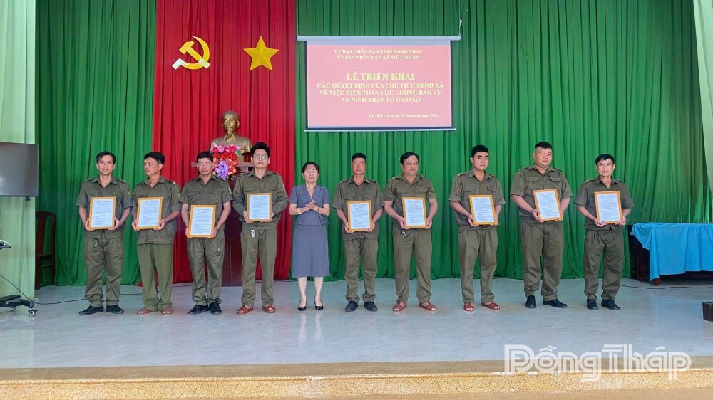 Tại buổi lễ, đồng chí Đặng Thị Minh Khai, Chủ tịch UBND xã Mỹ Tịnh An trao Quyết định kiện toàn 20 Tổ bảo vệ an ninh, trật tự tại cơ sở ở 20 ấp trên địa bàn xã; trao Quyết định về việc công nhận 29 tổ viên mới tại các Tổ bảo vệ an ninh, trật tự.