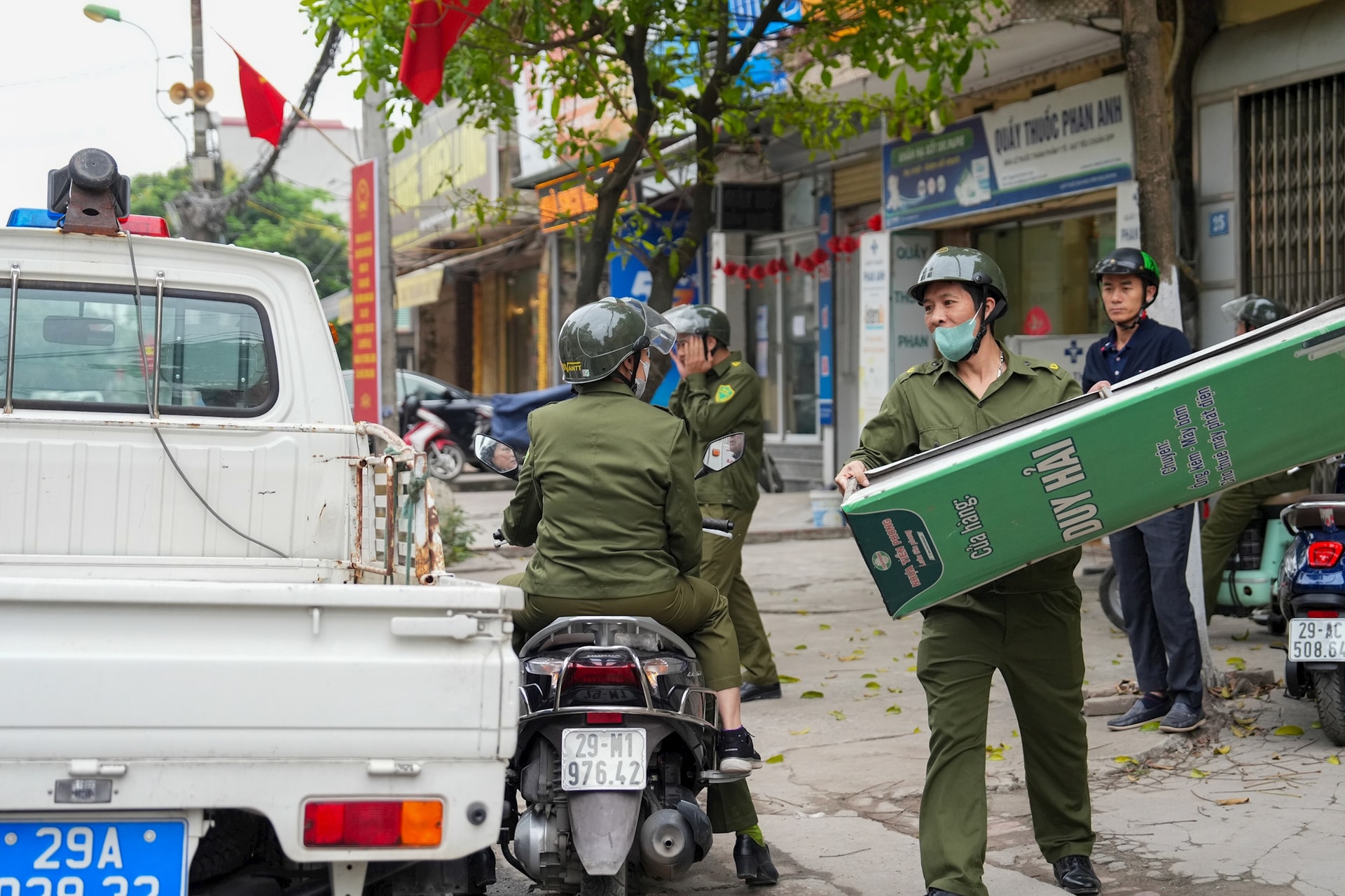 Xã Nam Phù ra quân xử lý điểm nghẽn về trật tự đô thị. Ảnh: Khánh Huy