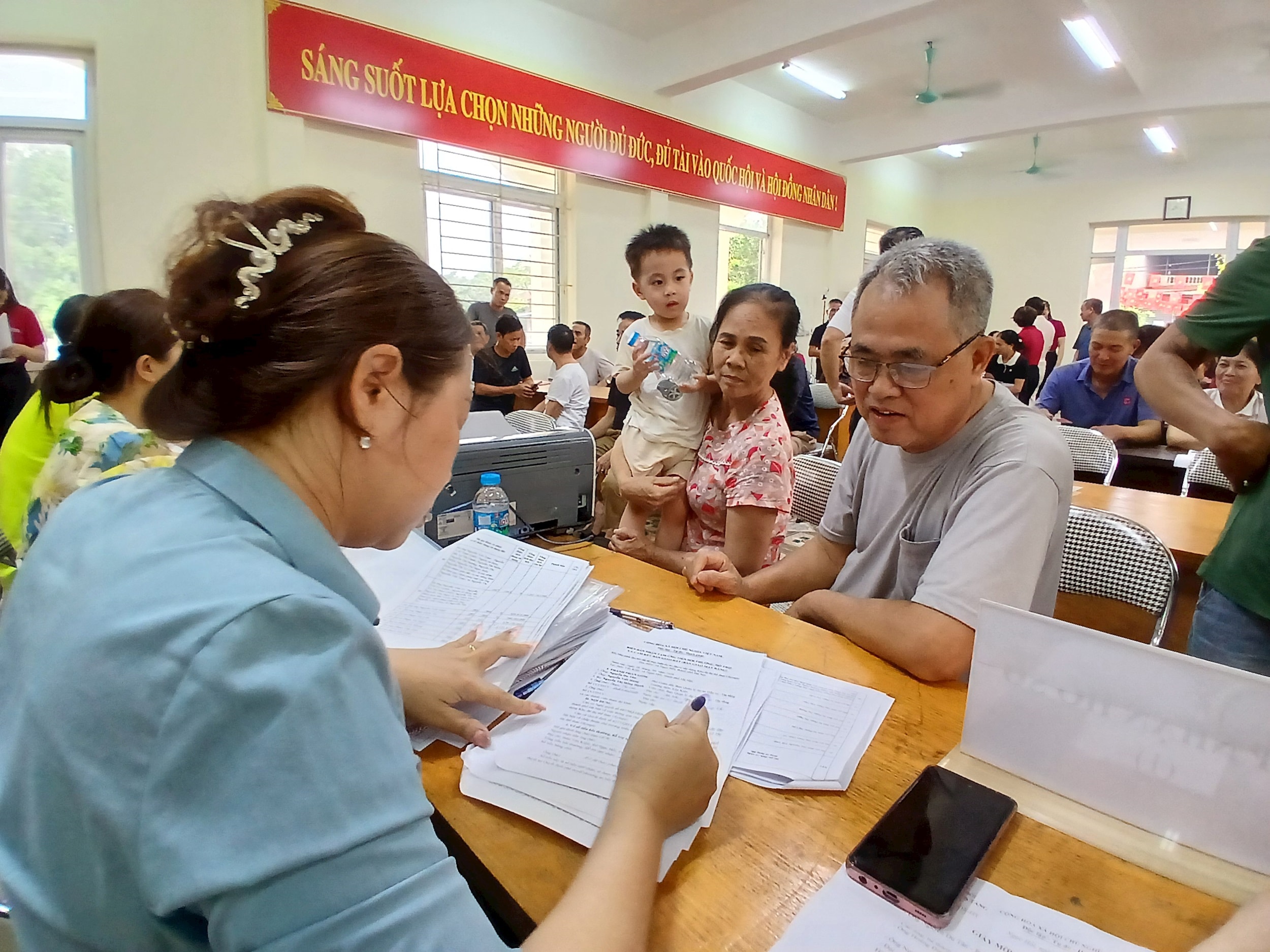 Thực hiện các thủ tục trước khi chi trả tiền bồi thường, hỗ trợ GPMB cho người dân. Ảnh: Hoàng Quyết
