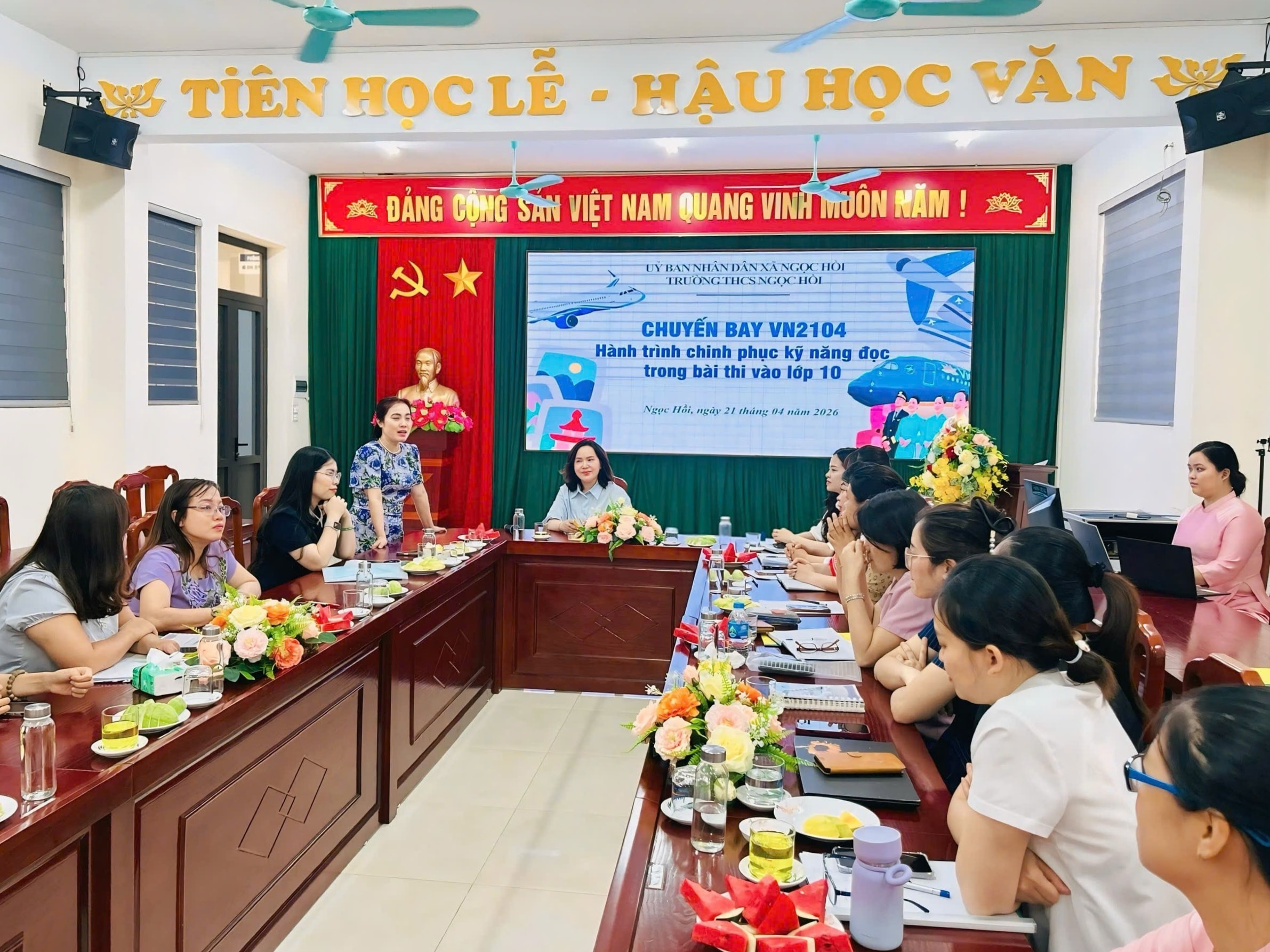 Ngày 21-4, tại Trường THCS Ngọc Hồi, Phòng Văn hóa - Xã hội xã Ngọc Hồi phối hợp cùng nhà trường tổ chức buổi sinh hoạt chuyên đề về ôn thi tuyển sinh vào lớp 10 THPT môn Tiếng Anh, với sự tham gia của đại diện lãnh đạo xã, Ban Giám hiệu các nhà trường và toàn thể giáo viên giảng dạy Tiếng Anh lớp 9 trên địa bàn. Chuyên đề do tổ Tiếng Anh Trường THCS Ngọc Hồi xây dựng và trực tiếp trình bày.