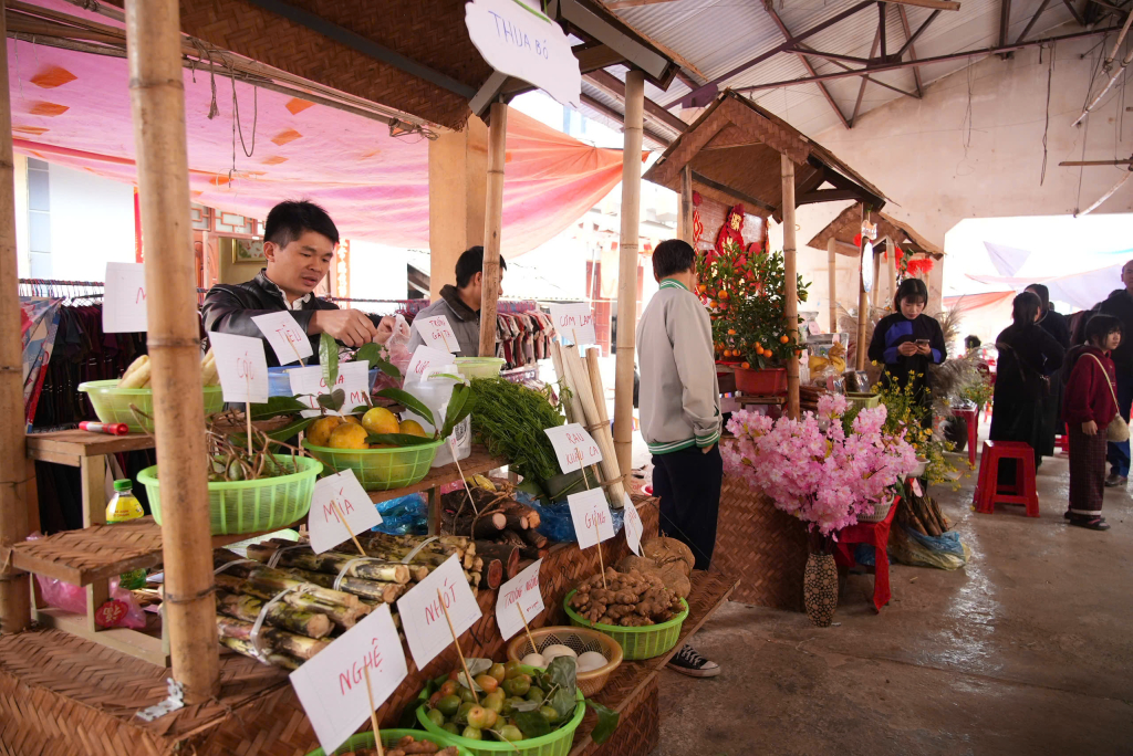 Các gian hàng OCOP của các xóm được bày biện phong phú.