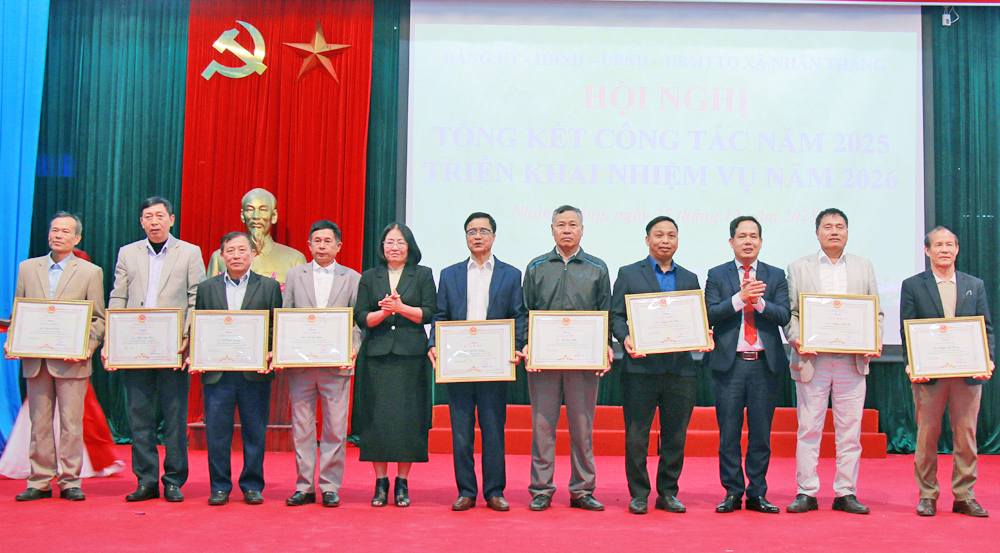 Tại hội nghị, UBND xã khen thưởng 10 tập thể đạt danh hiệu “Tập thể lao động tiên tiến năm 2025”; 4 tập thể, 24 cá nhân đạt danh hiệu “Hoàn thành xuất sắc nhiệm vụ công tác năm 2025”.
