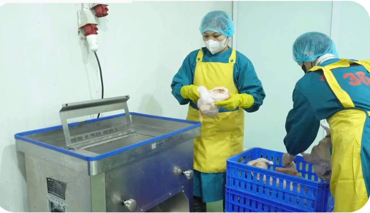 Dây chuyền giết mổ gia cầm tại Công ty cổ phần Thương mại Lan Vinh. Ảnh: PV